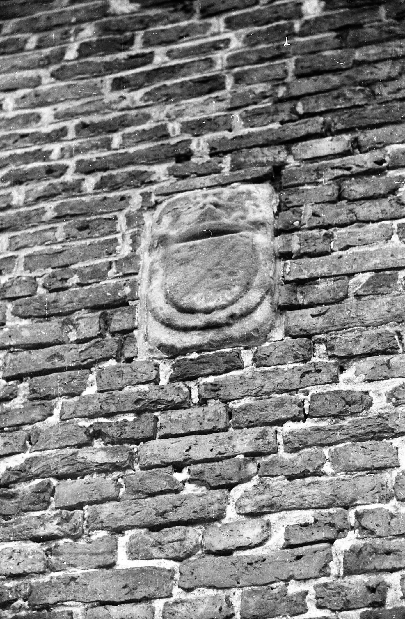 Gevelsteen met wapen, Zandeweer, 1944 (zwart-wit negatief)