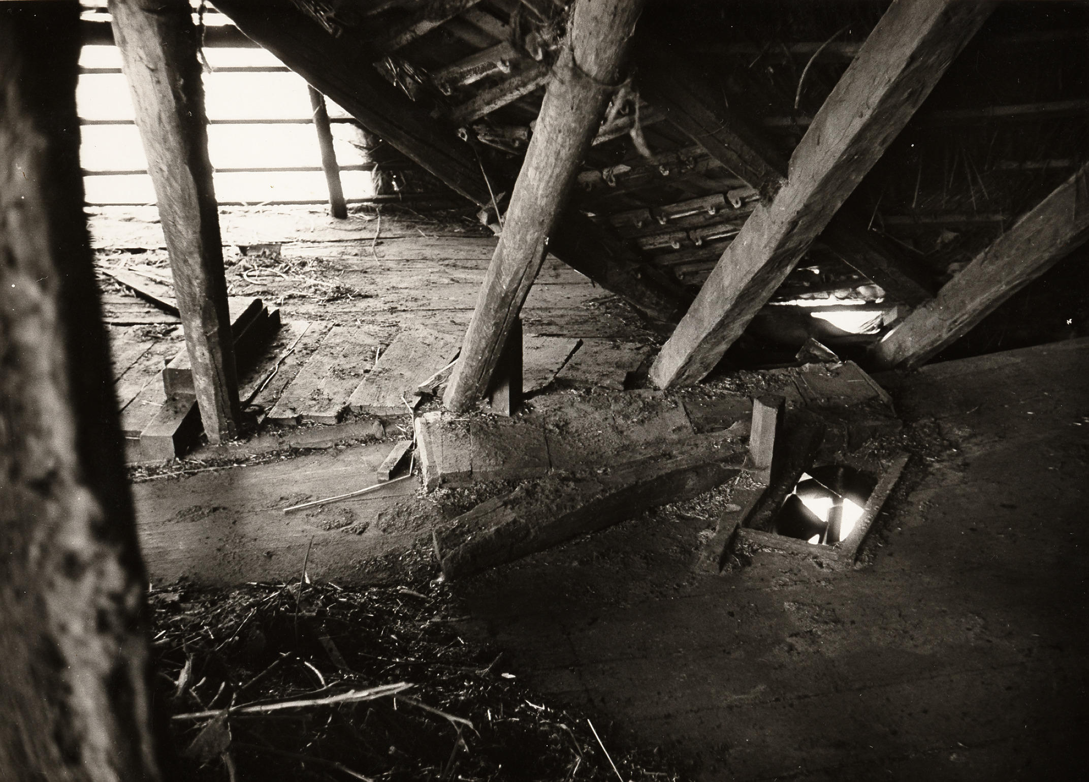 Afbraak van boerderij, Staphorst, 1950 (zwart-wit foto)