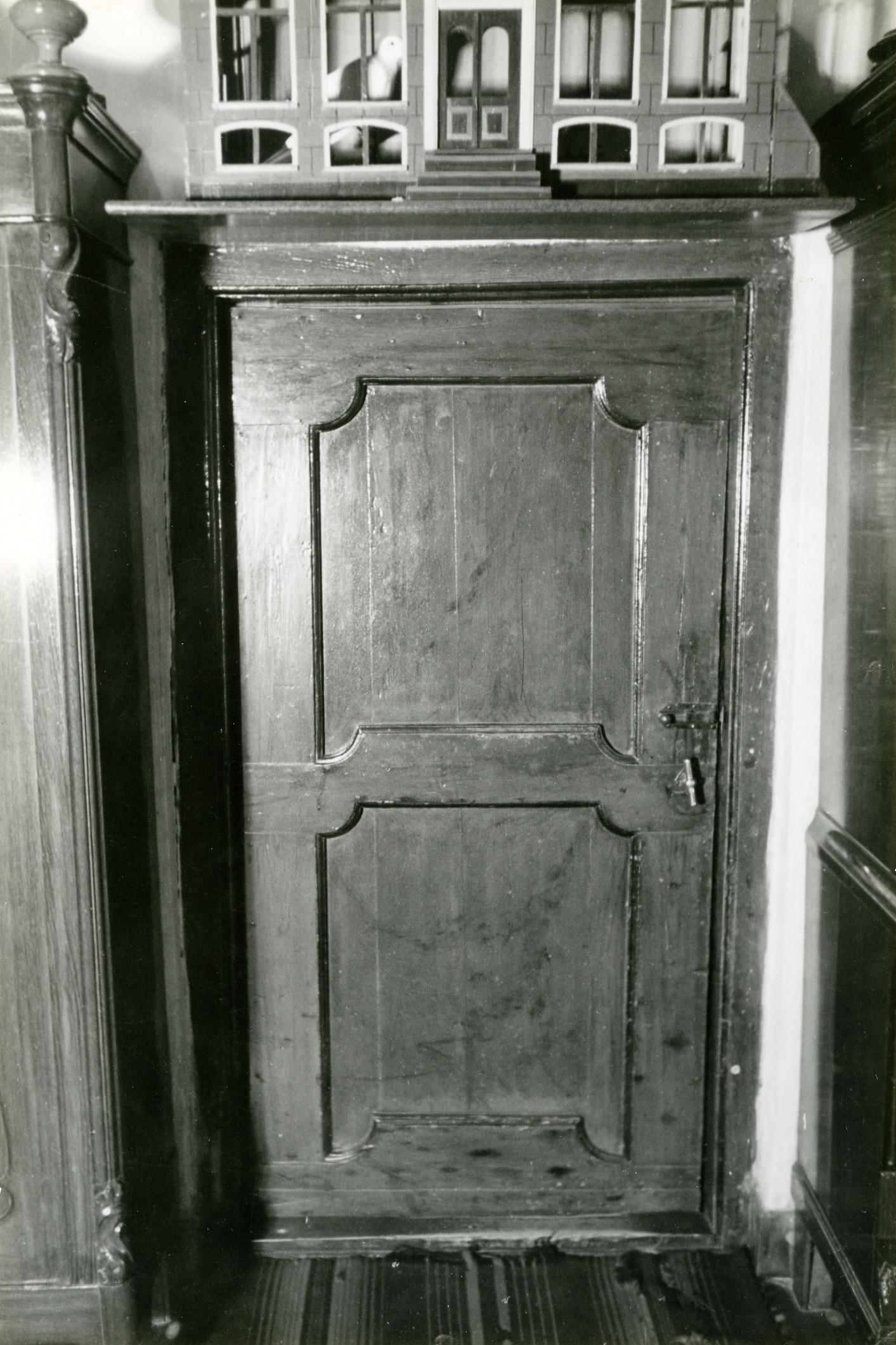 Kamerdeur in een interieur in Zandeweer. Boven de deur hangt een duivenkooi.