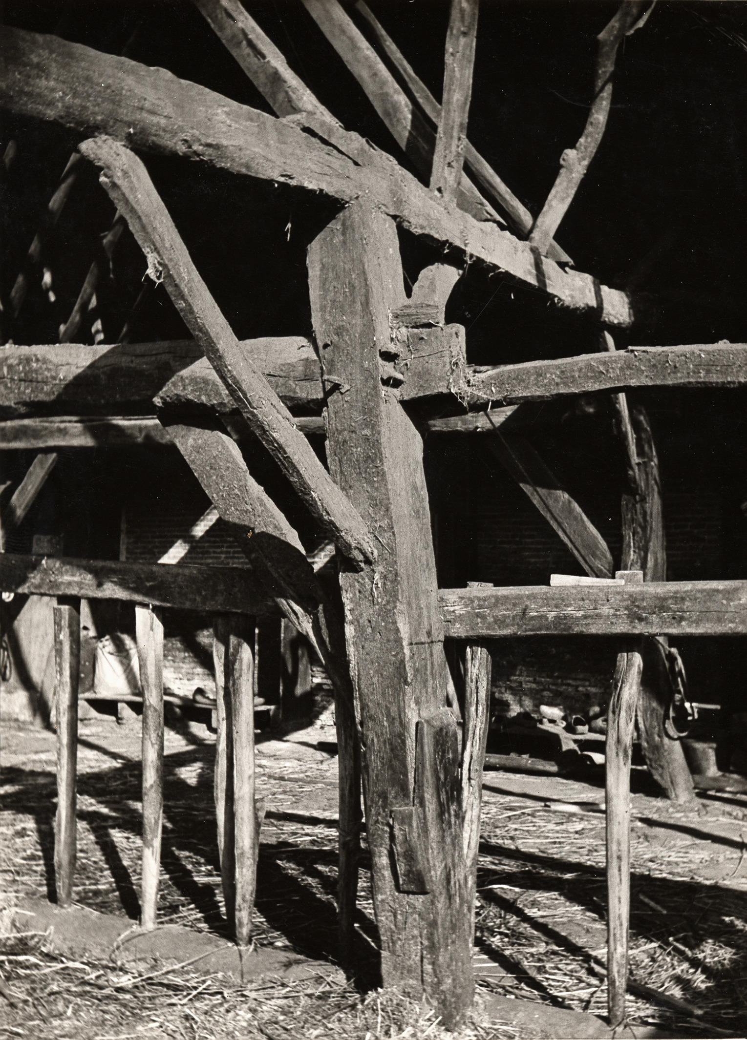 Afbraak van een boerderij in Staphorst in 1950. Deze boerderij is vervolgens overgebracht naar het Nederlands Openluchtmuseum in Arnhem.
