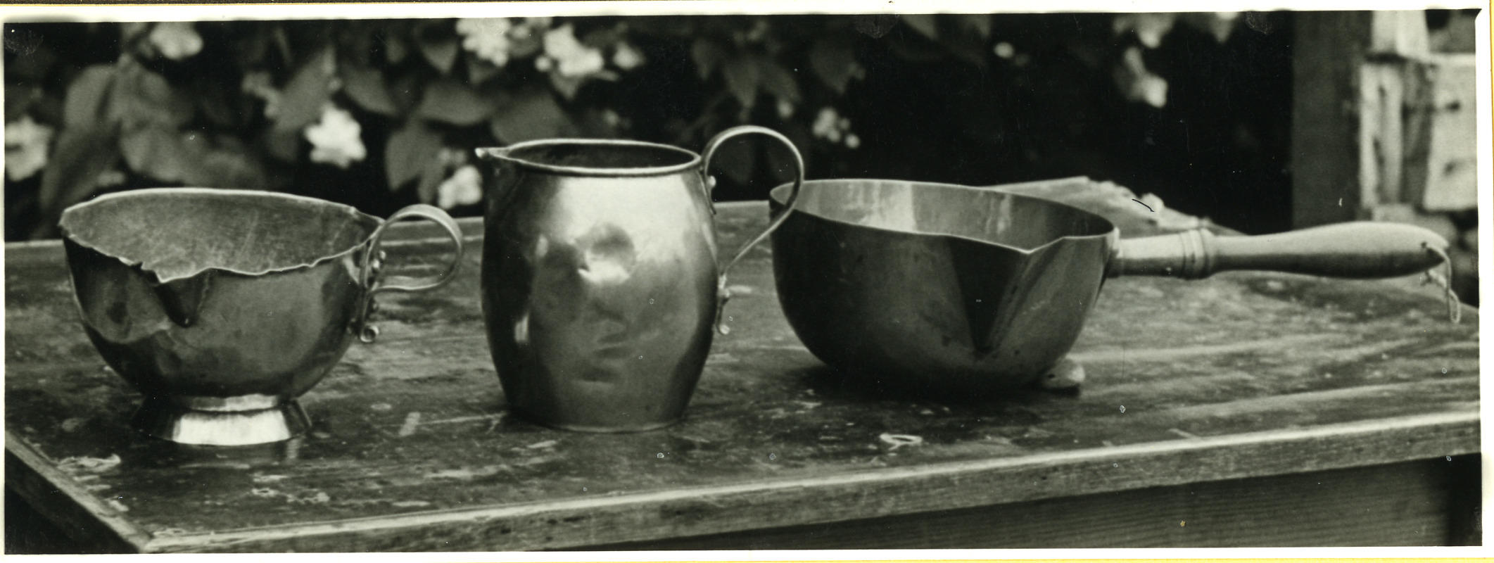 Koperen keukengerei, Staphorst, 1950 (zwart-wit foto)