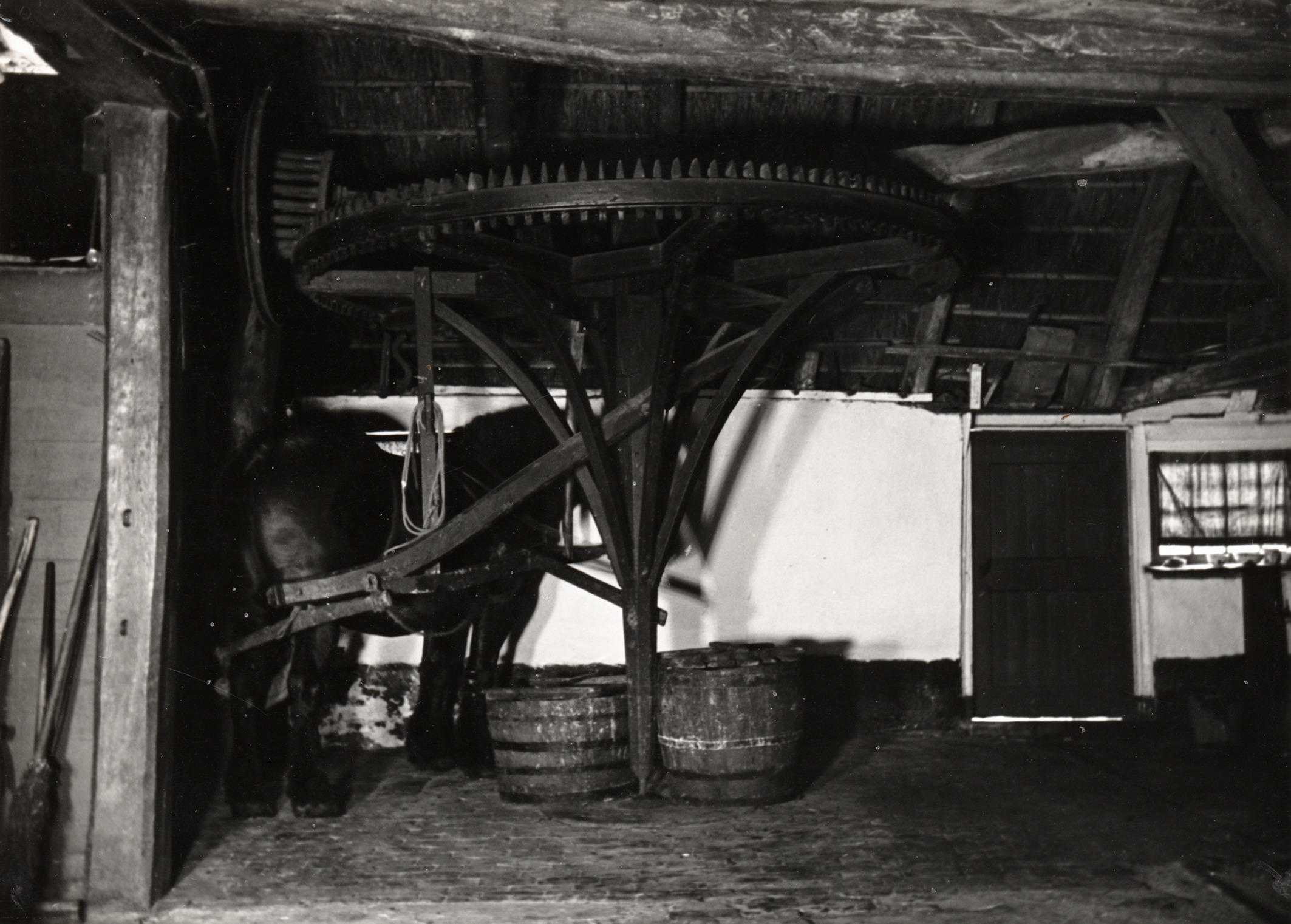 Rosmolen met paard, Staphorst, 1950 (zwart-wit foto)