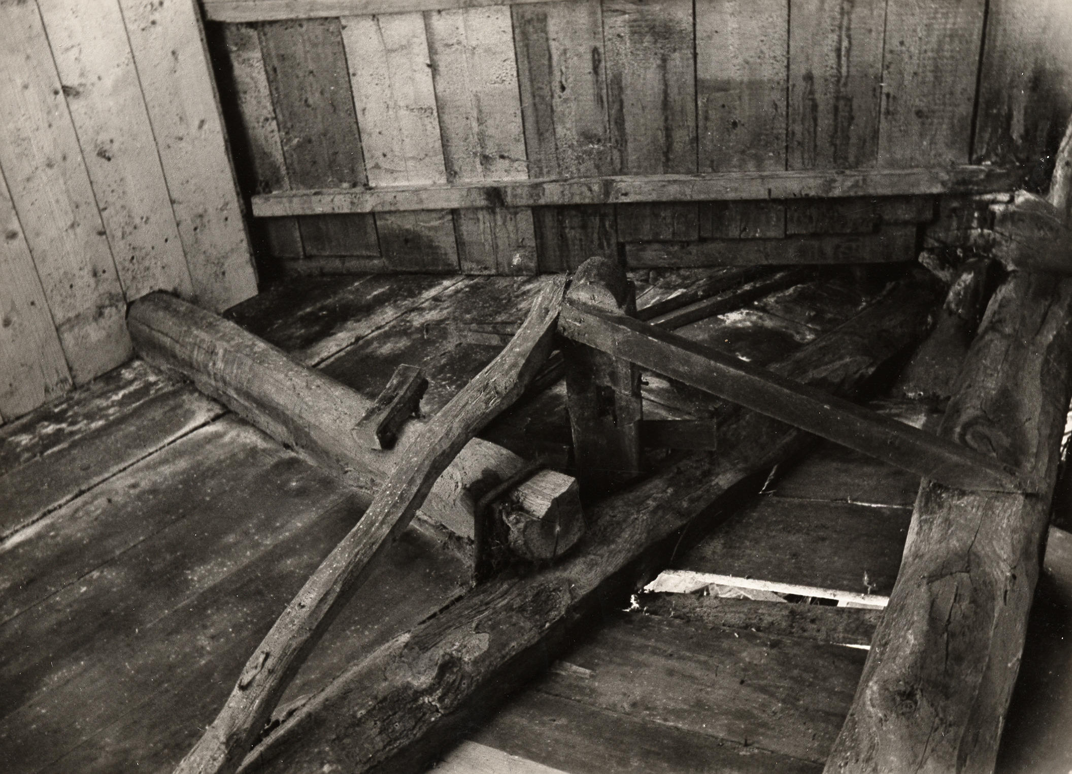 Afbraak van boerderij, Staphorst, 1950 (zwart-wit foto)