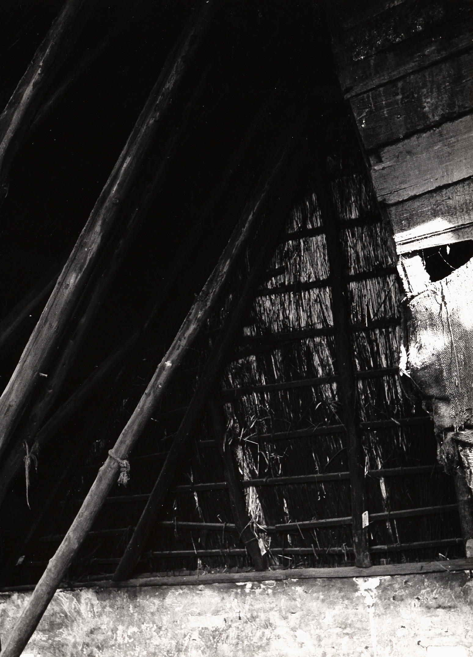 Afbraak van boerderij, Staphorst, 1950 (zwart-wit foto)