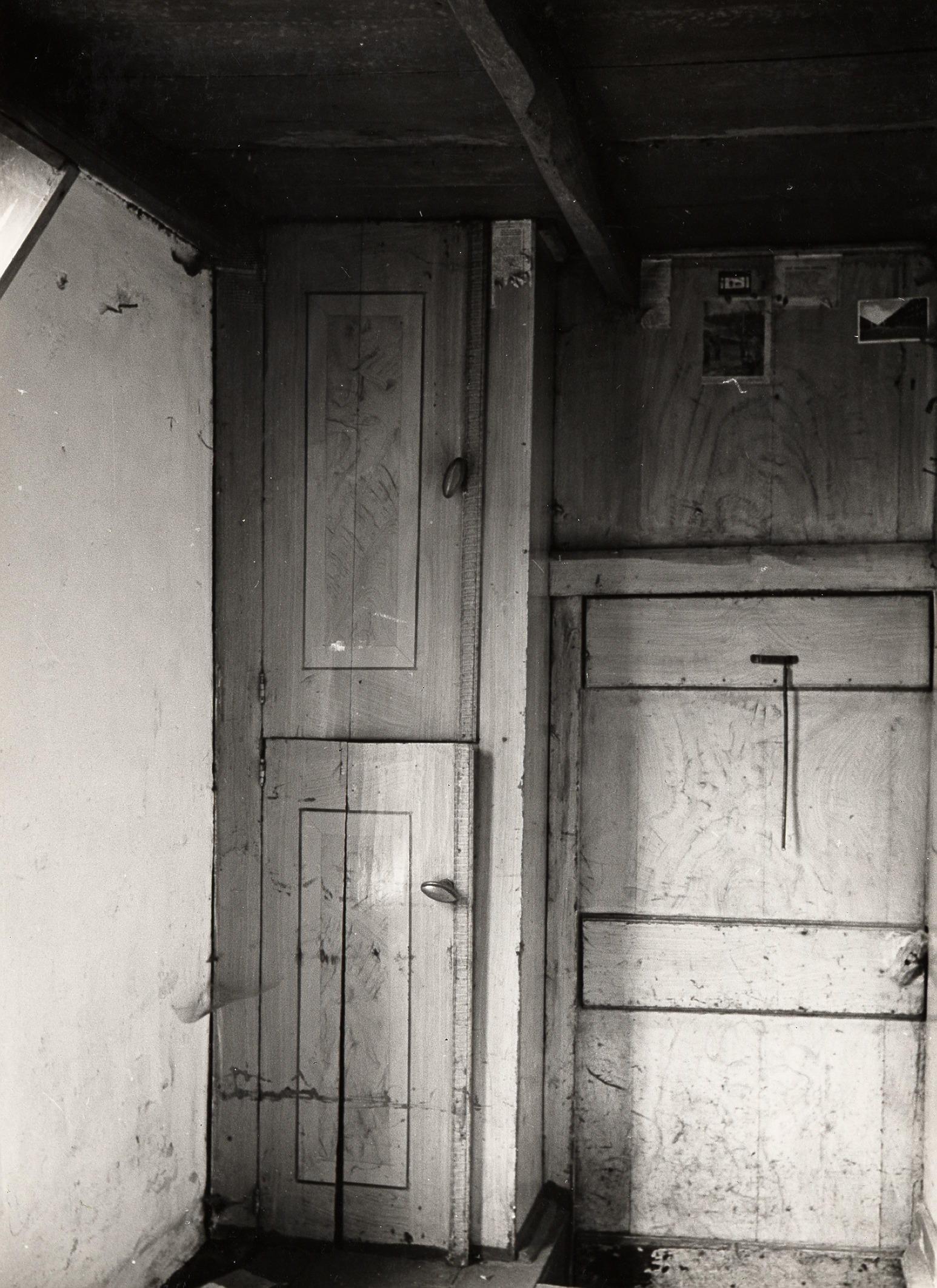 Afbraak van boerderij, Staphorst, 1950 (zwart-wit foto)