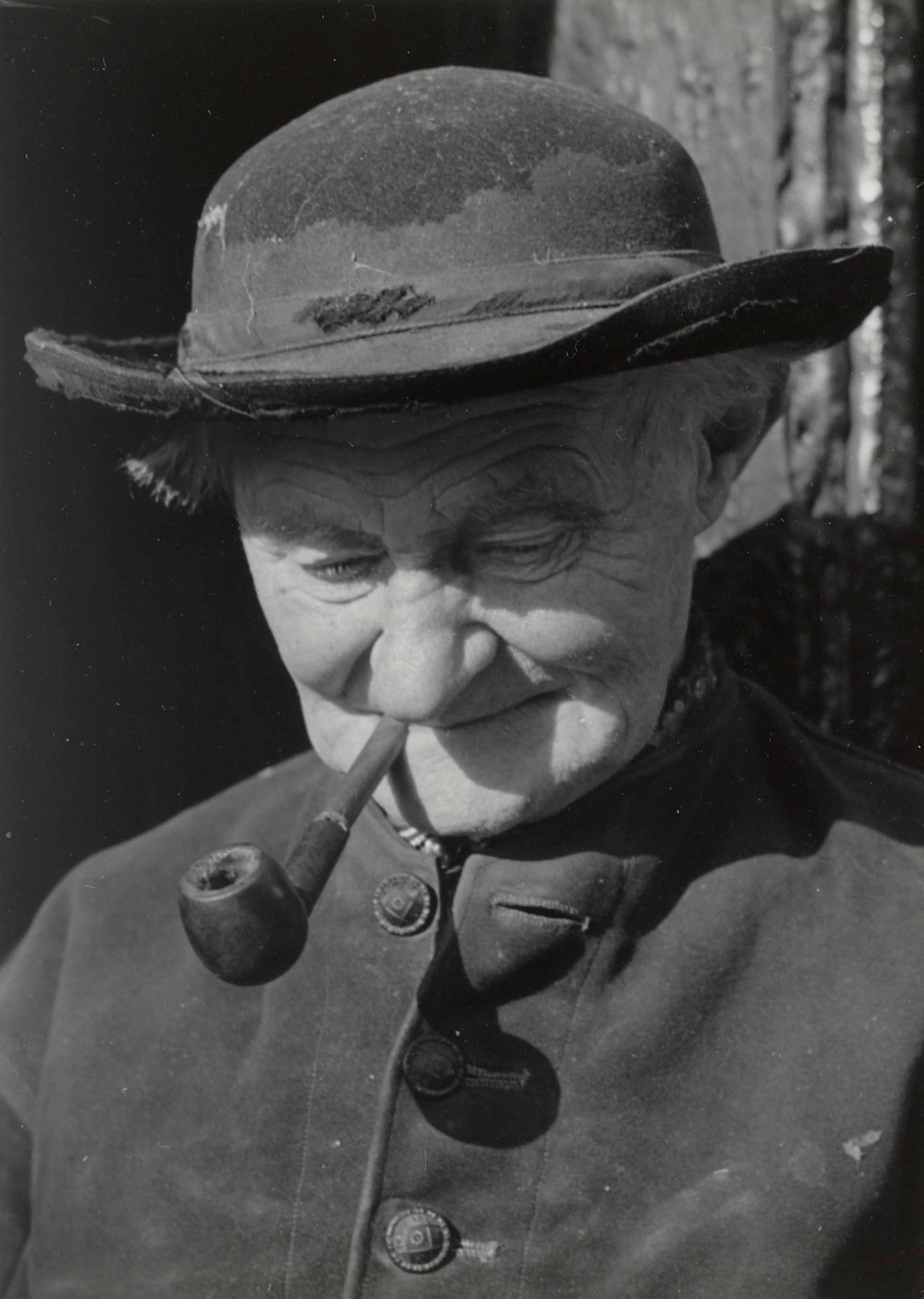 Man in protestantse Zuid-Bevelandse dracht, Heinkenszand, 1950 (zwart-wit foto)