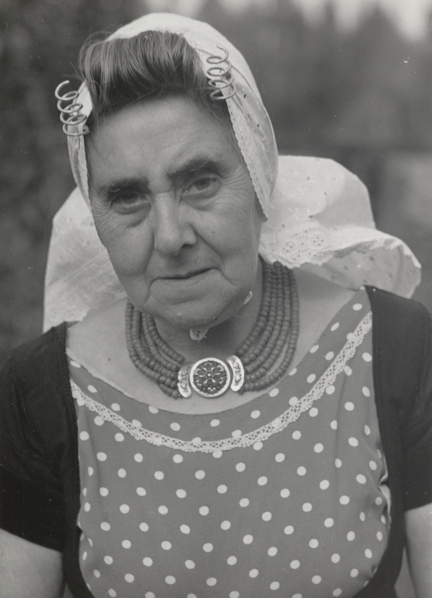 Vrouw uit Veere in Walcherse dracht, 1950 (zwart-wit foto)