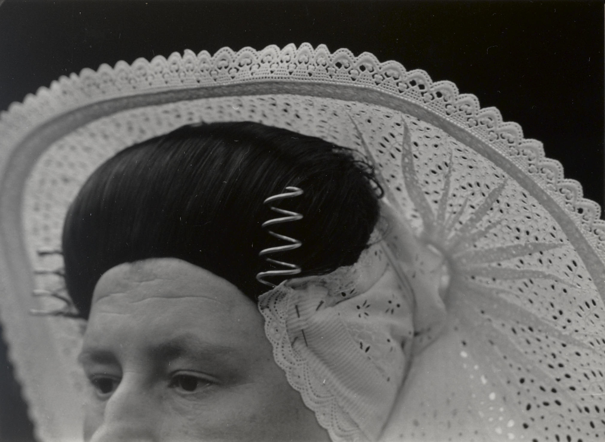 Johanna Martina Polderdijk-Brasser uit Nieuwland, gekleed in de streekdracht van Nieuw- en Sint Joosland. Johanna is een welgestelde boerin. Ze is gekleed in haar opknapdracht. Ze draagt hierbij een muts van broderie. Het oorijzer is met gewone knopspelden in de ondermuts vastgestoken.