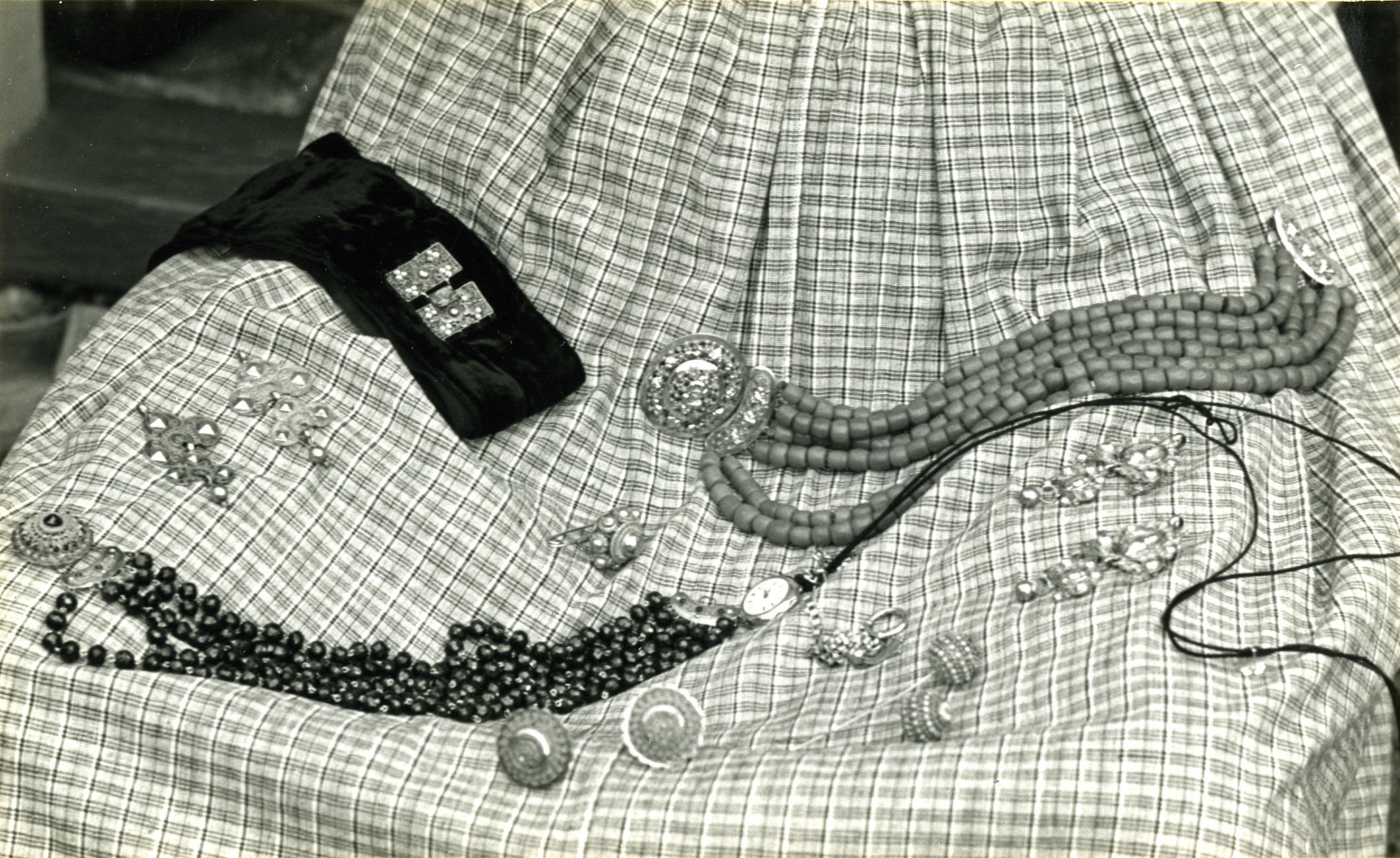 Sieraden uit Nieuwland, 1950 (zwart-wit foto)