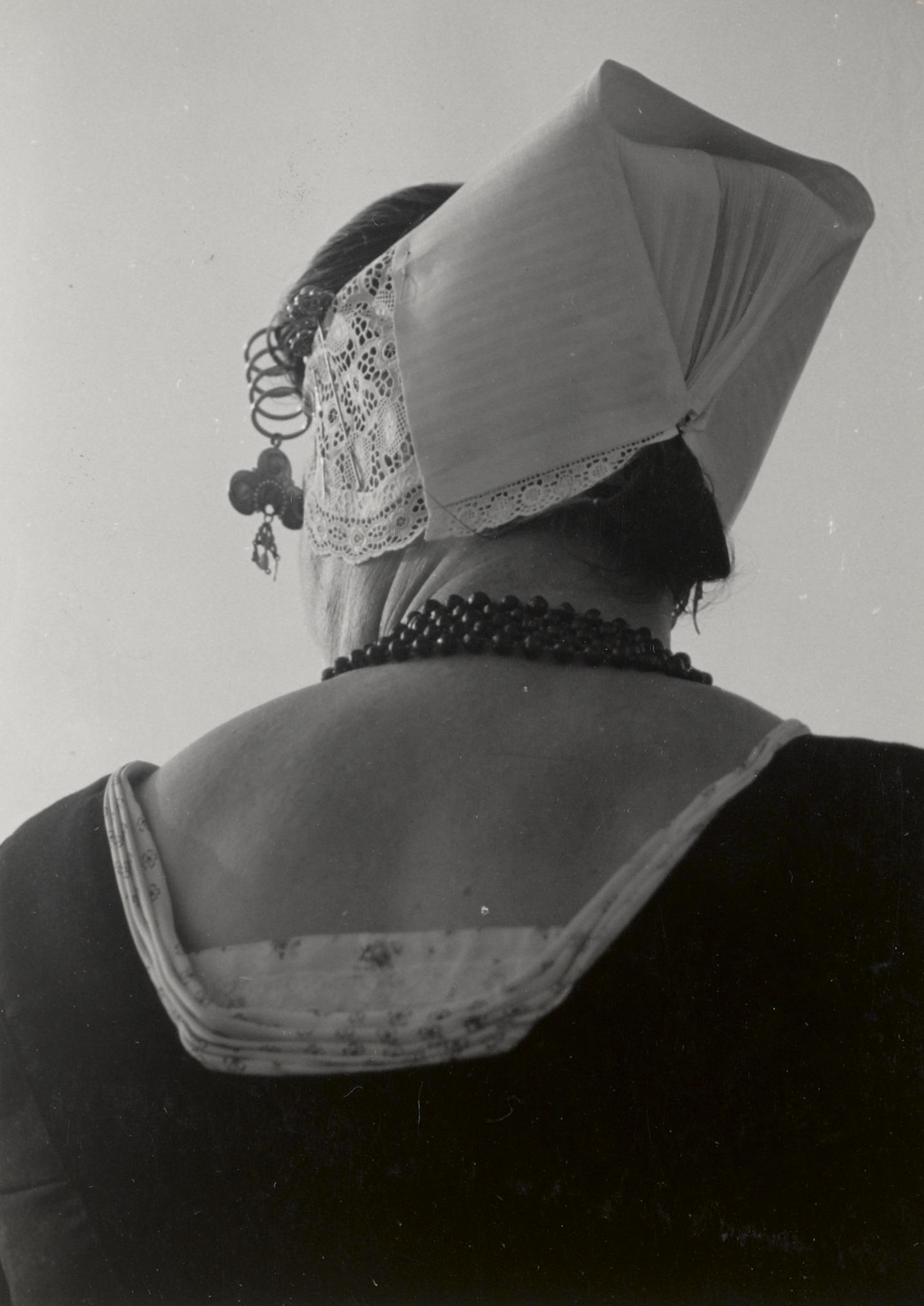 Martina de Vos uit Westkapelle in Walcherse dracht, 1950 (zwart-wit foto)