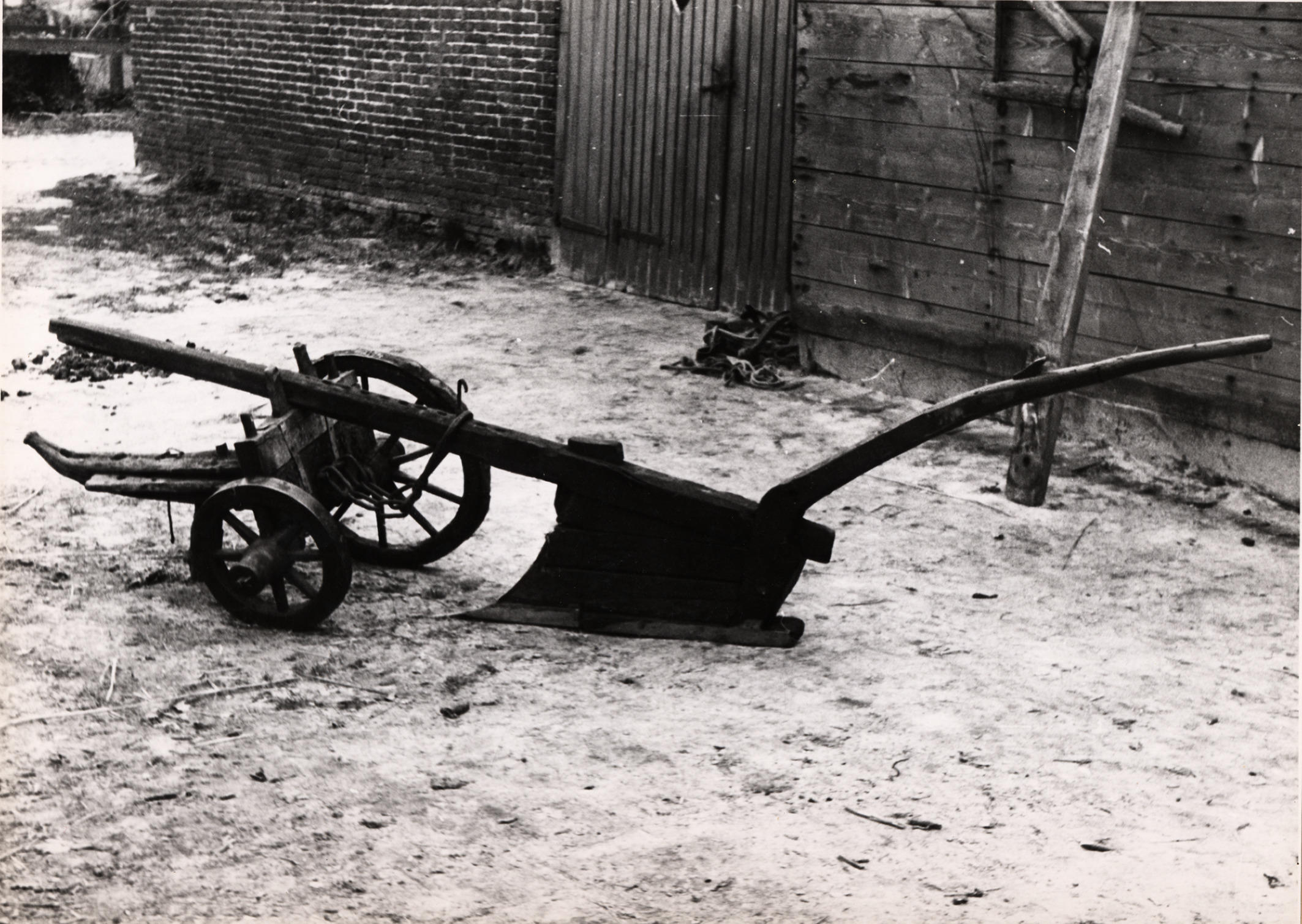 Houten stelploeg, Staphorst, 1944 (zwart-wit foto)