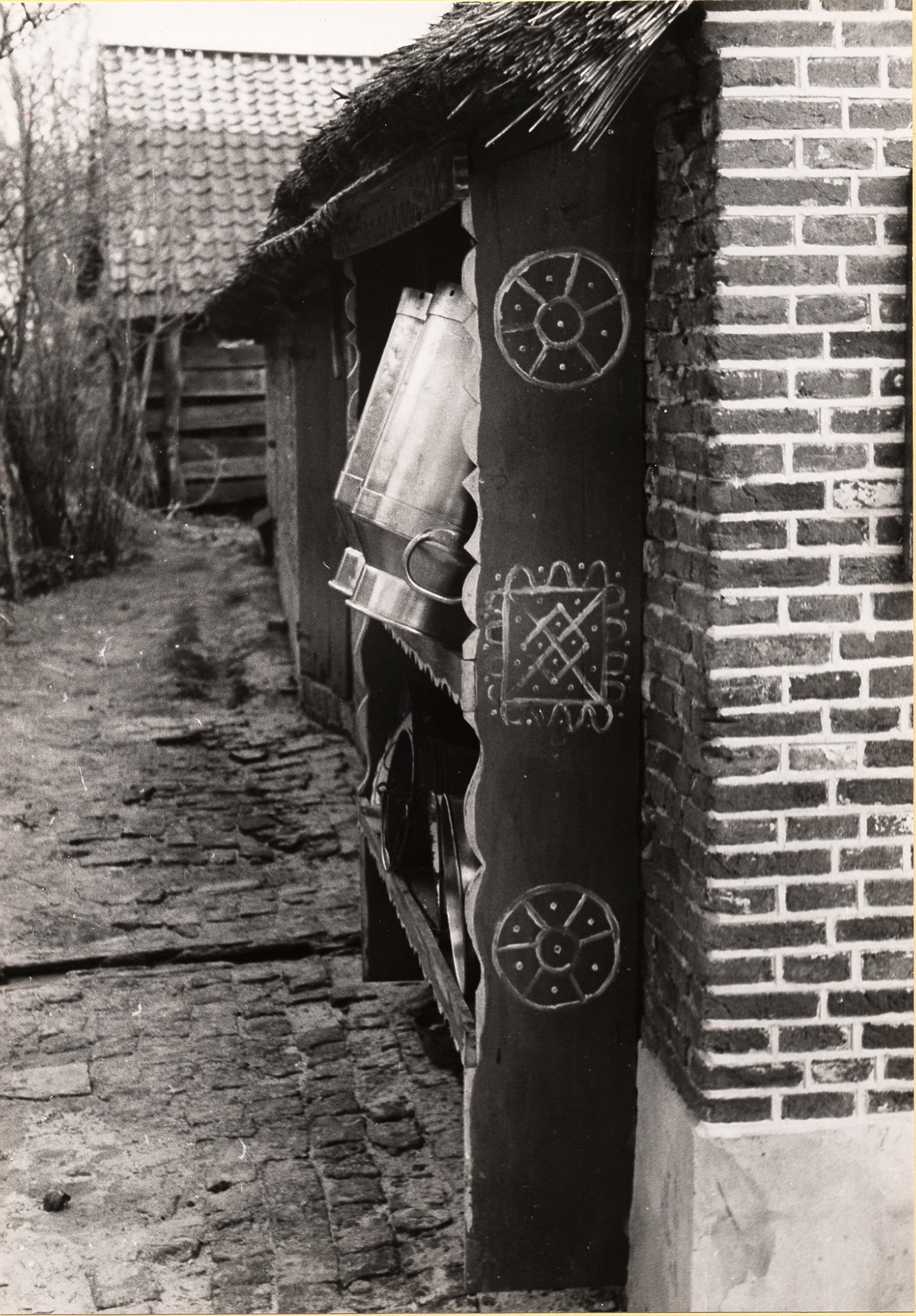 Melkbussenrek, Staphorst, 1944 (zwart-wit foto)