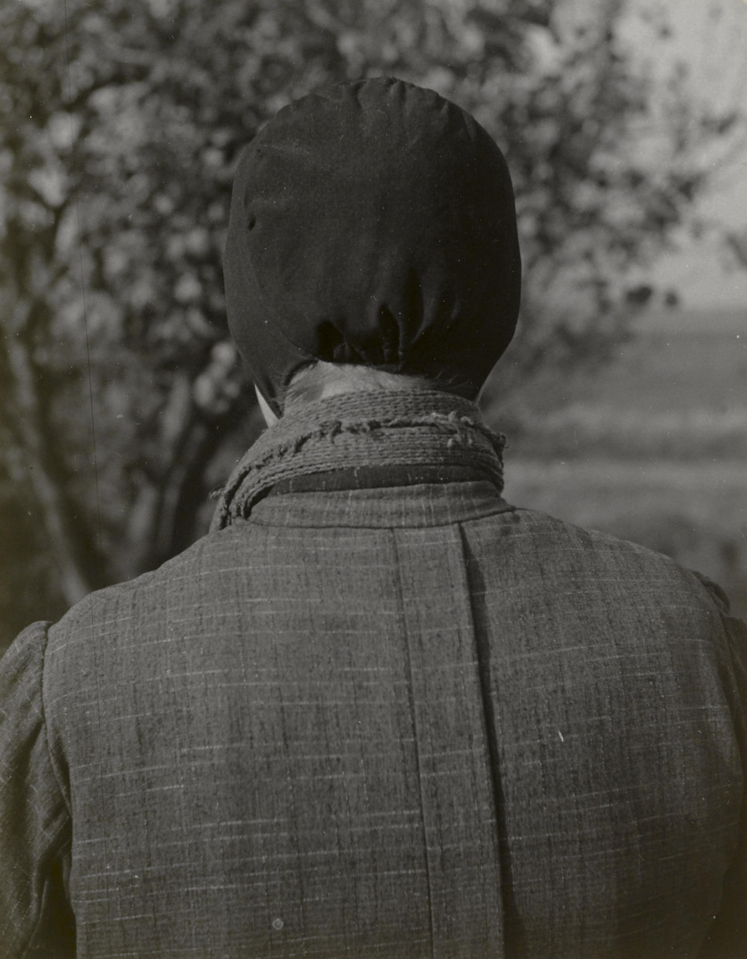 Vrouw in Cadzandse dracht, 1950 (zwart-wit foto)