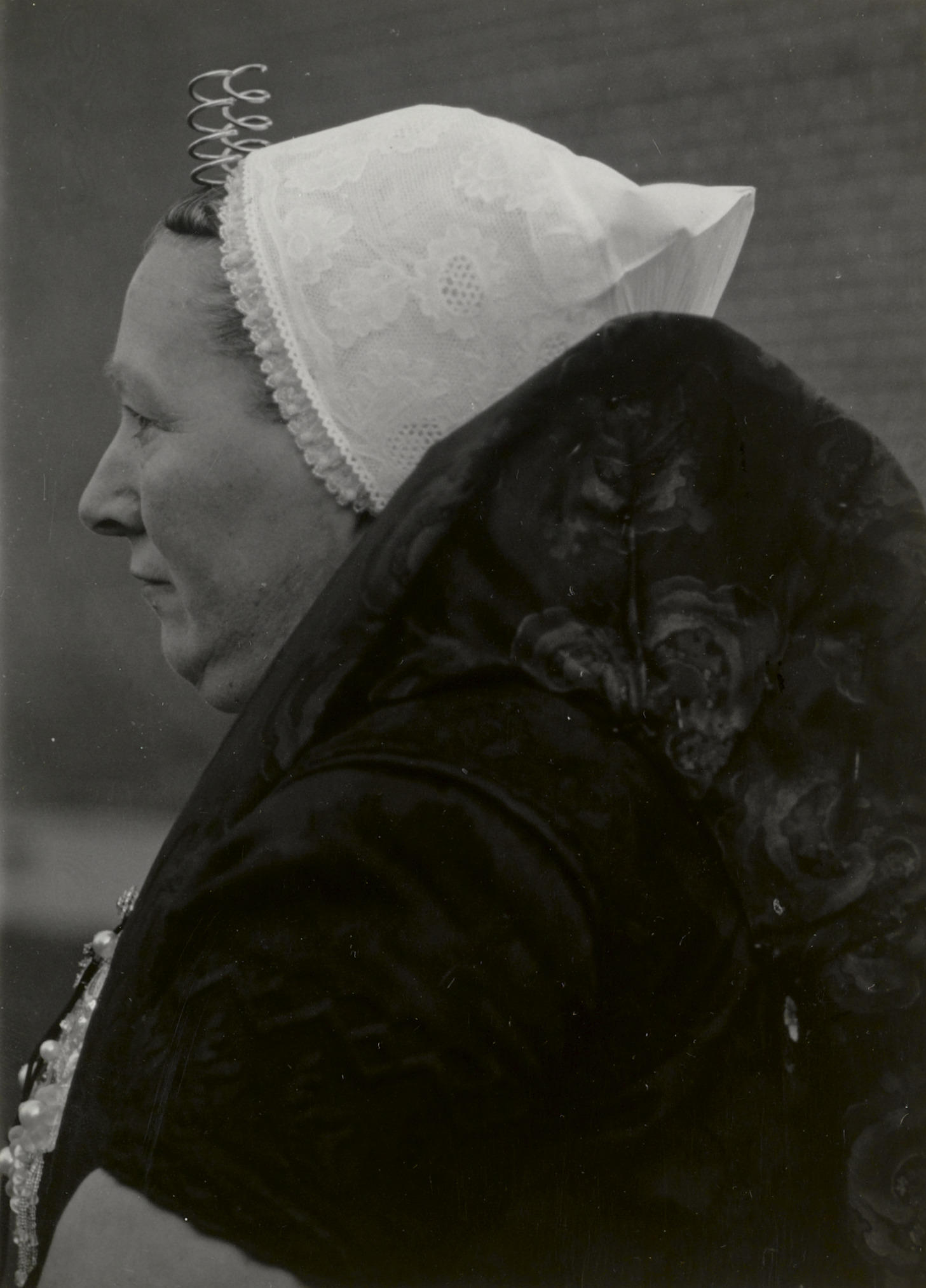 Suzanna van de Wege in Axelse streekdracht, 1950 (zwart-wit foto)