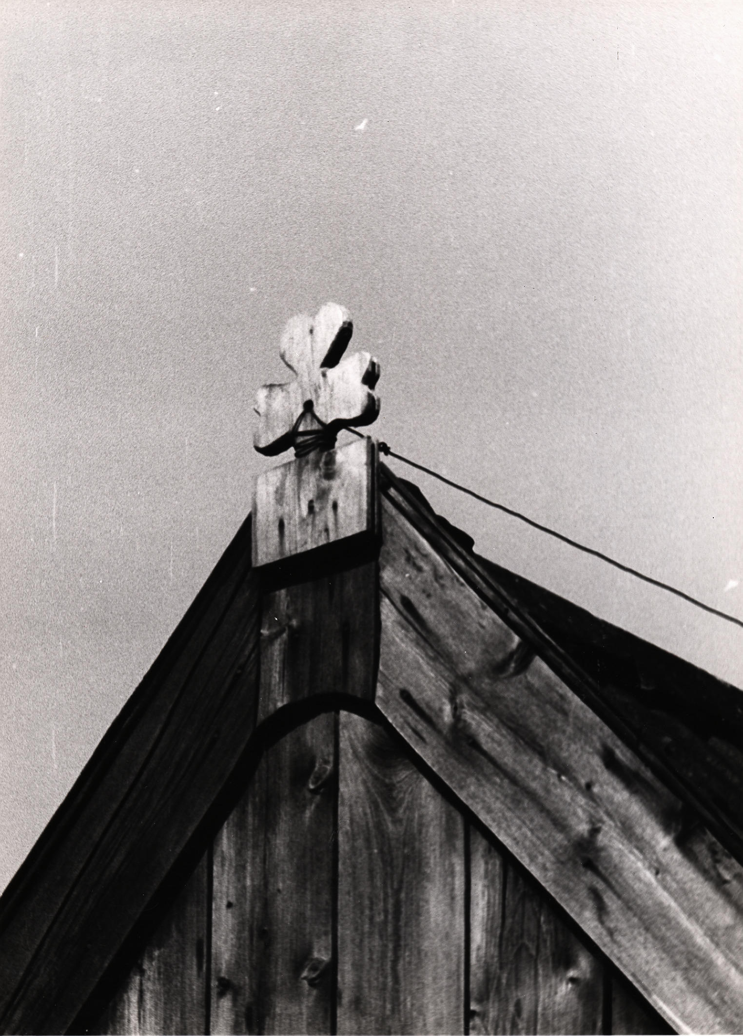 Makelaar in de vorm van een klaverblad aan een houten topgevel in Staphorst.