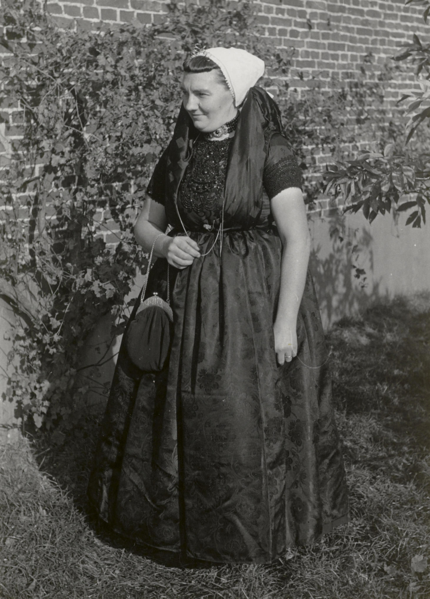 Pieternella Steendijk-Dekker uit Magrette in Axelse streekdracht. Ze is gekleed in zondagse dracht en is in de rouw.