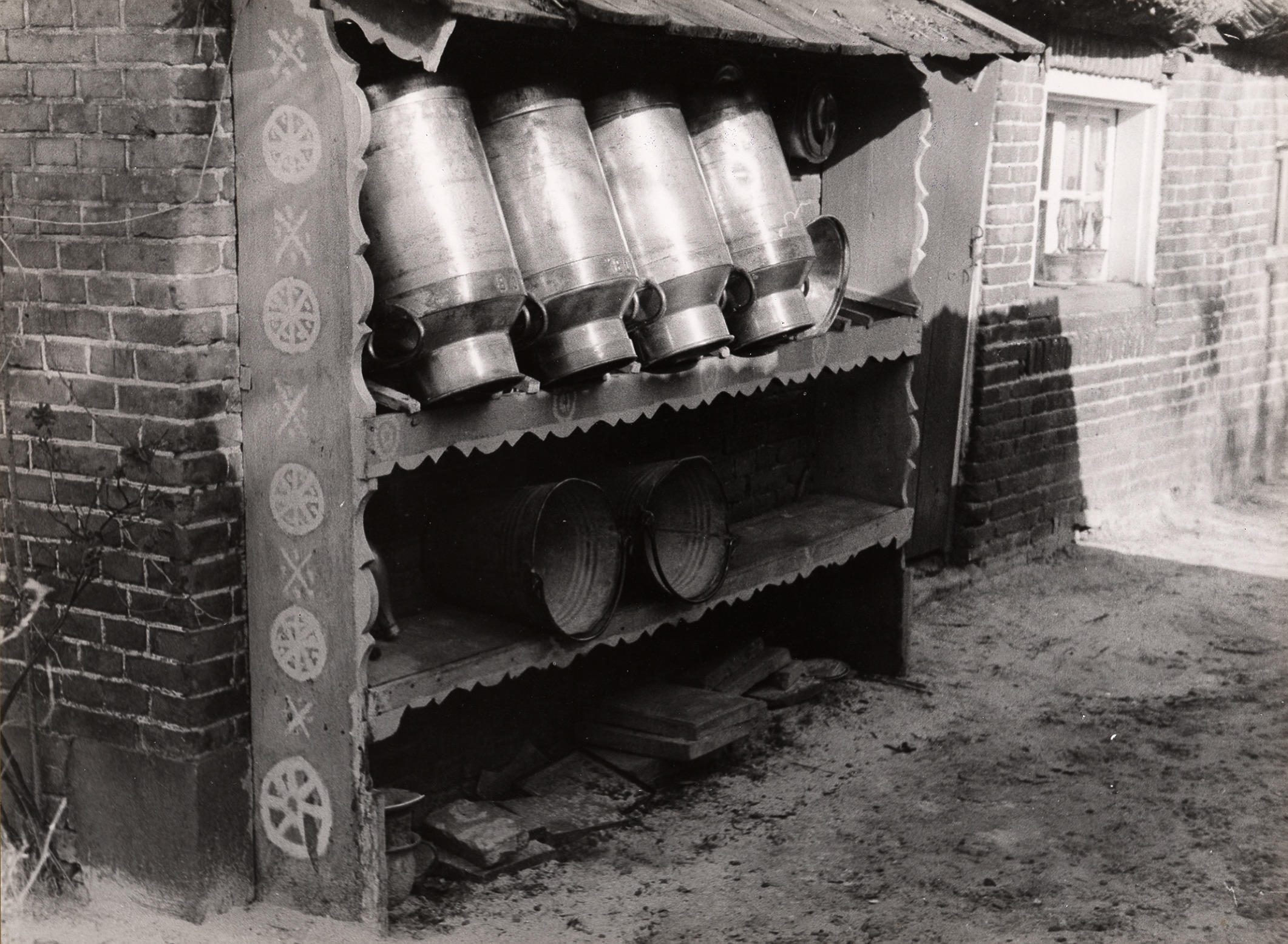 Melkbussenrek, Staphorst, 1944 (zwart-wit foto)