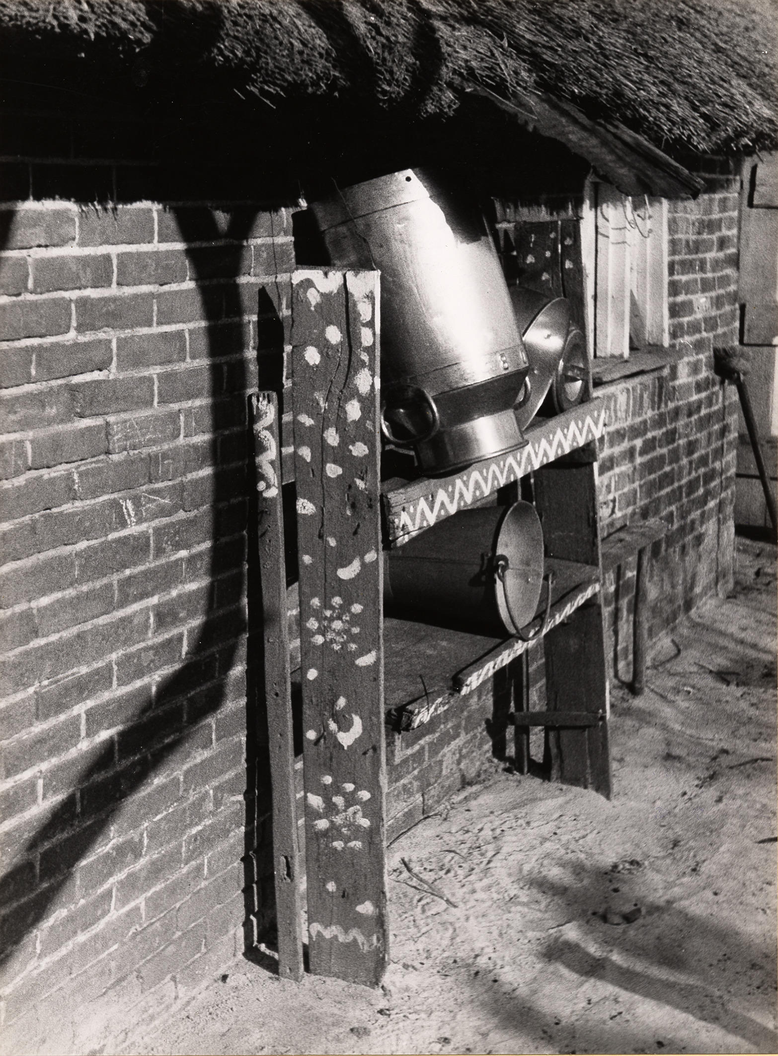 Melkbussenrek, Staphorst, 1944 (zwart-wit foto)