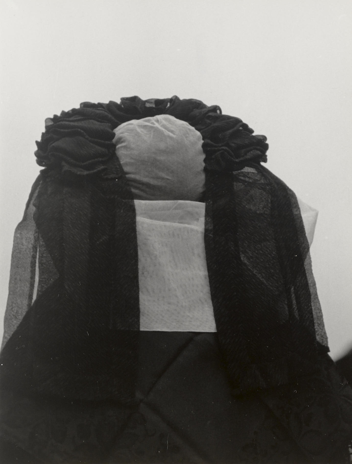 Nel van den Goor-van Enckevort uit De Hees, een buurtschap bij Sevenum. Nel is speciaal voor de foto verkleed in de Noord-Limburgse streekdracht van haar moeder. Ze is gekleed in zondagse rouwdracht. Over de batisten muts draagt ze een zogenoemde toer, een losse versiering die op hoogtijdagen op de muts wordt geplaatst. De rouwtoer is ...