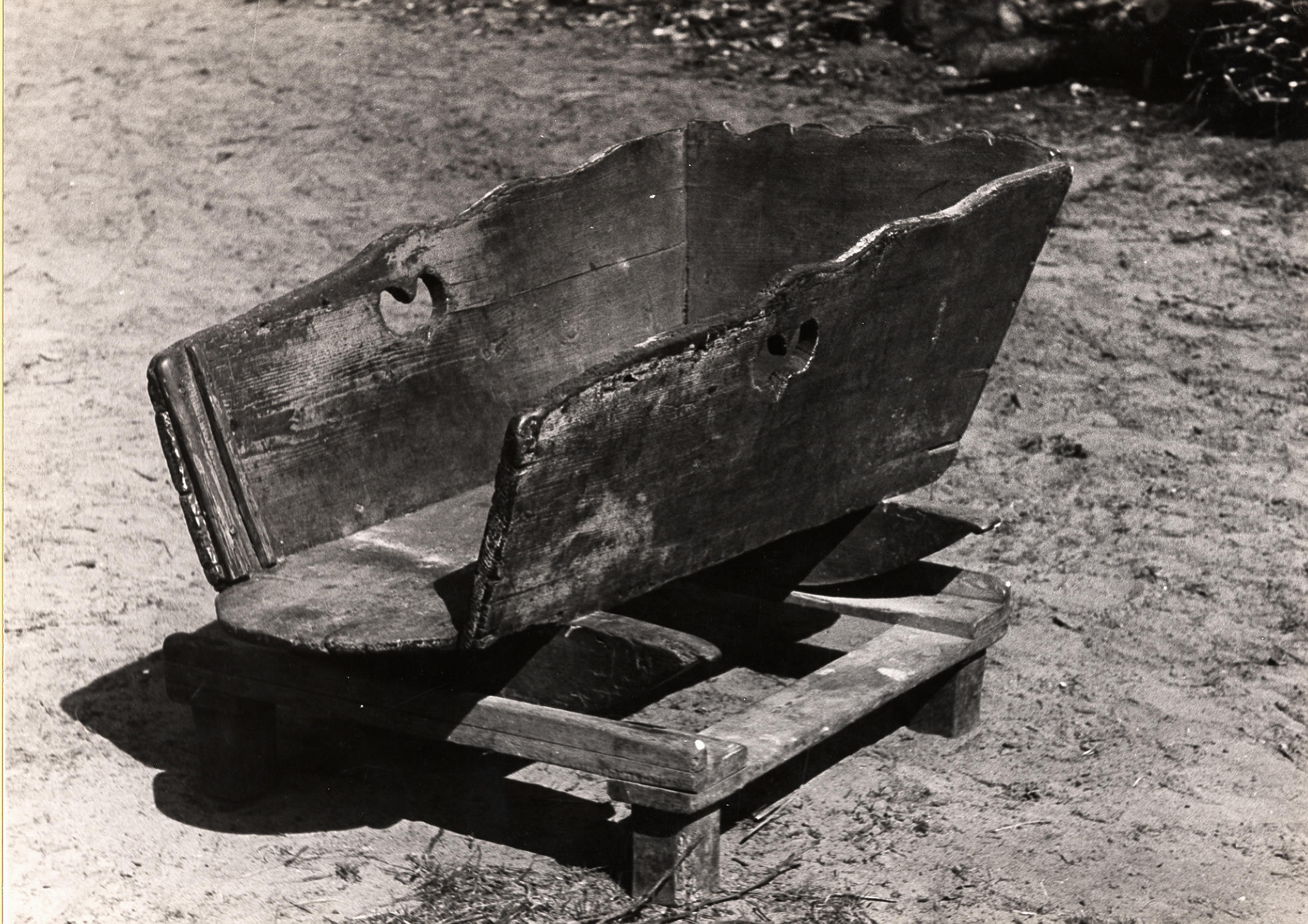 Houten schommelwieg op schamel, Staphorst, 1944 (zwart-wit foto)