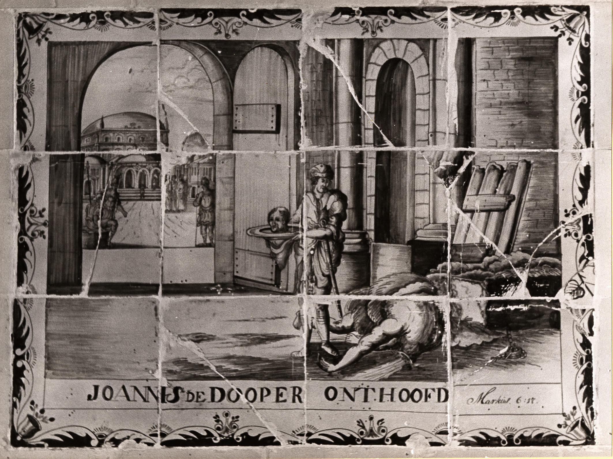 Tegeltableau met de Bijbelse voorstelling 'Johannis de Dooper onthoofd' in een woning in Staphorst.
