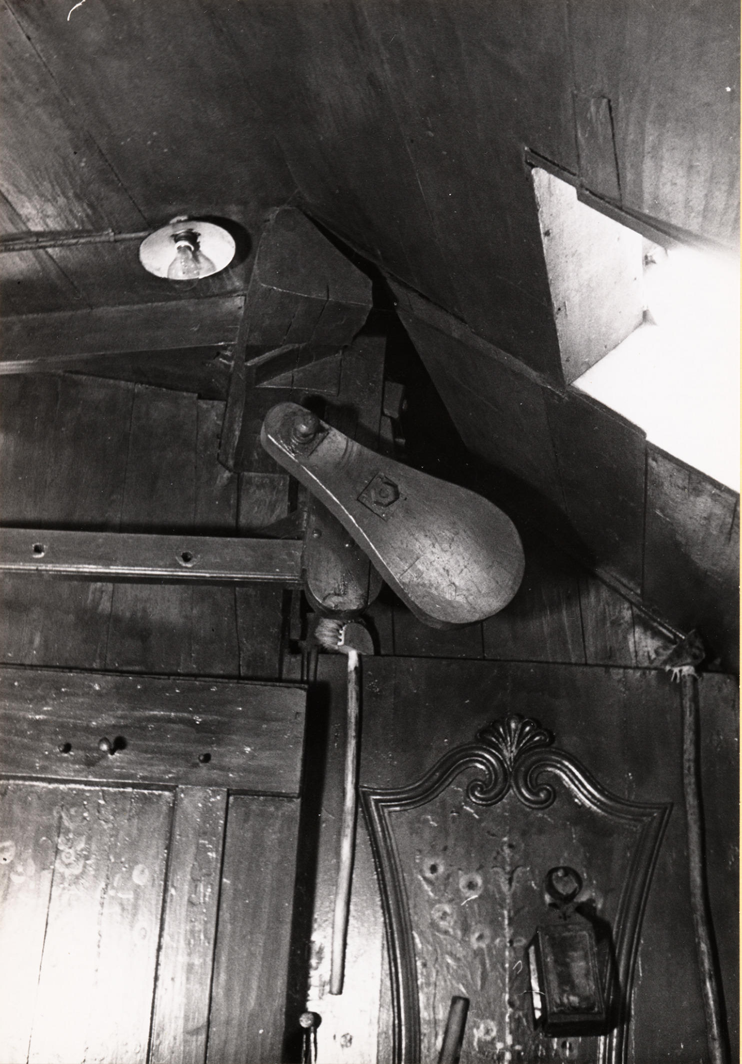Detail van een karnmolen, Staphorst, 1944 (zwart-wit foto)