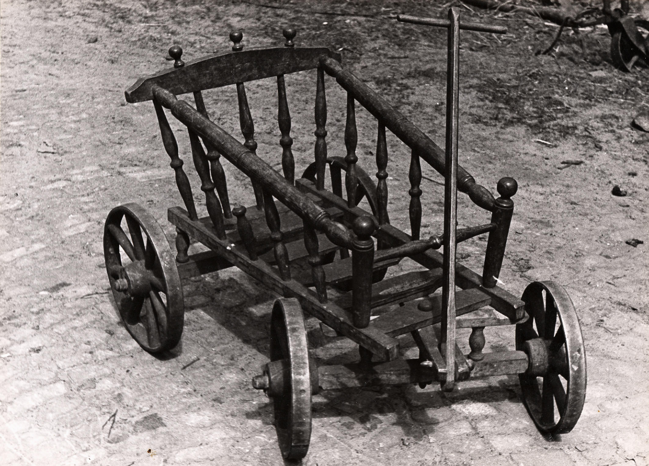Houten kindertrekwagentje, Staphorst, 1944 (zwart-wit foto)