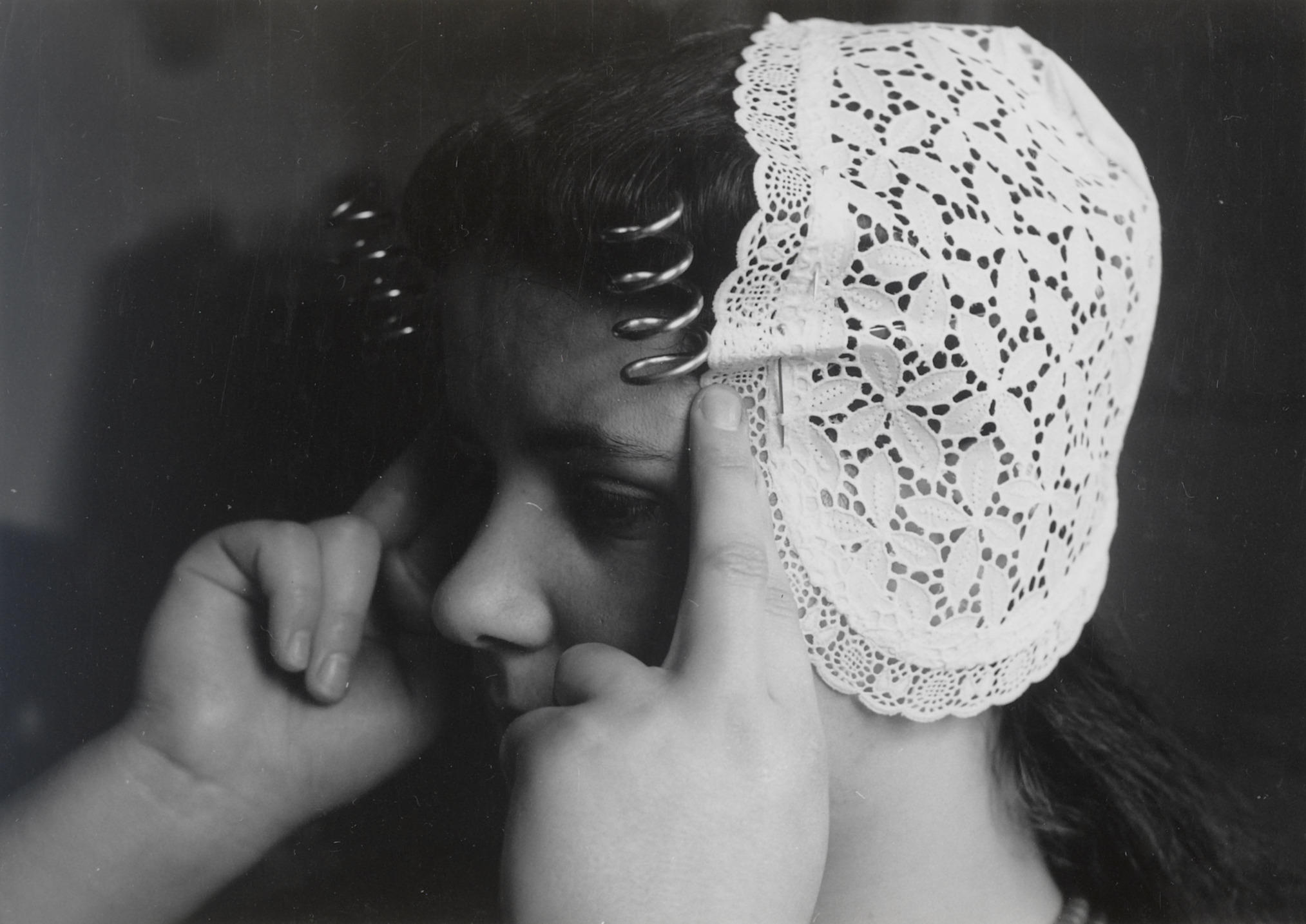 Kornelia Minderhoud uit Westkapelle demonstreert samen met haar moeder Willemina Minderhoud-Boogaard het 'kapzetten' van de Walcherse meisjesmuts, de zogenoemde lange muts. Het meeste haar is naar voren gekamd en in het midden gescheiden. De beide helften van het haar zijn door Willemina Minderhoud naar binnen gedraaid (naar het voorhoofd toe) tot twee stevige rollen. Vervolgens ...