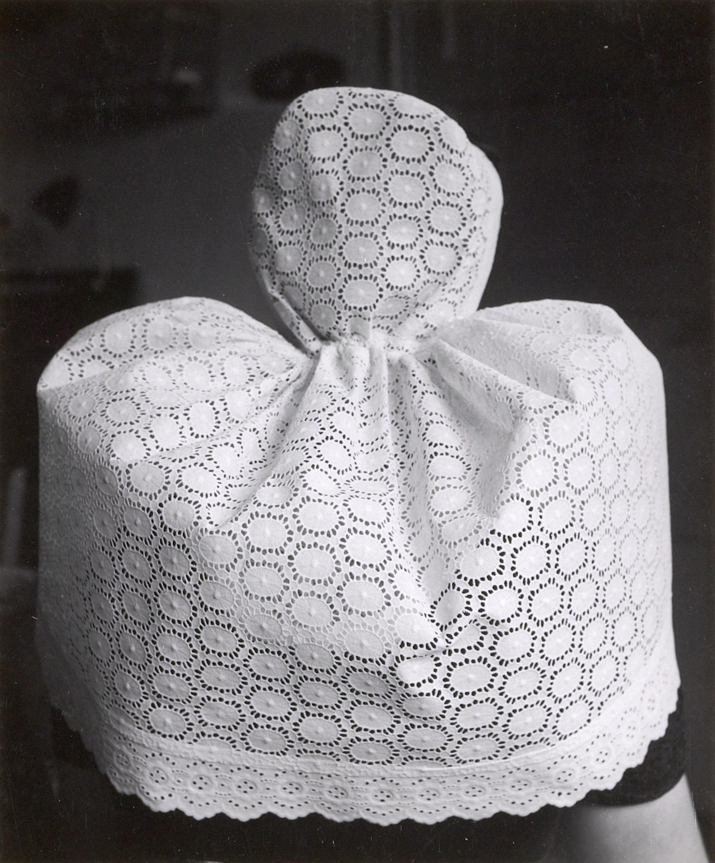 Kornelia Minderhoud uit Westkapelle demonstreert samen met haar moeder Willemina Minderhoud-Boogaard het 'kapzetten' van de Walcherse meisjesmuts, de zogenoemde lange muts. Het meeste haar is naar voren gekamd, in het midden gescheiden en tot twee stevige rollen gedraaid. Vervolgens is de ondermuts van witte broderie met het daarin vastgespelde oorijzer opgezet. De ondermuts is aan ...