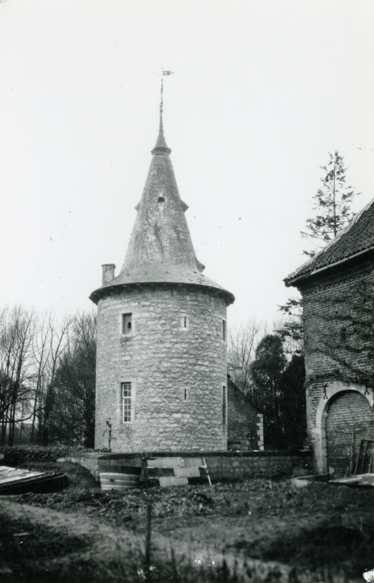 Toren van kasteel Cortenbach, Voerendaal, 1935 (zwart-wit foto)