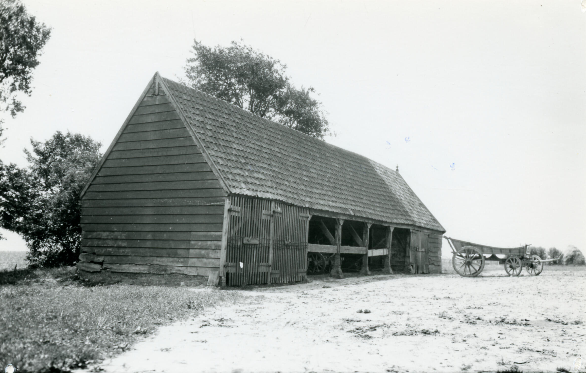 Wagenschuur bij boerderij 'Berghoeve', Cadzand, 1933 (zwart-wit foto)