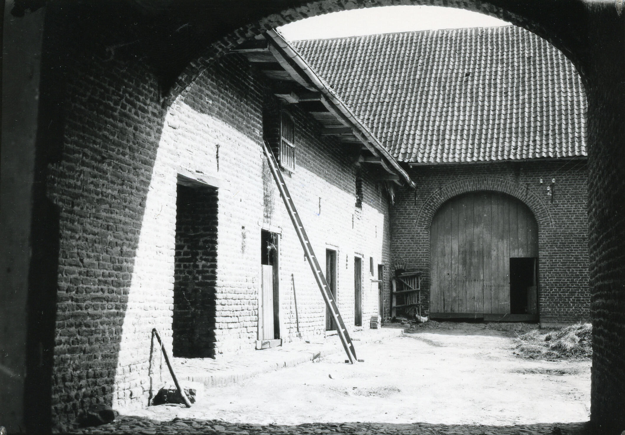 Binnenplaats van een boerderij, Bingelrade, 1930-1940 (zwart-wit foto)
