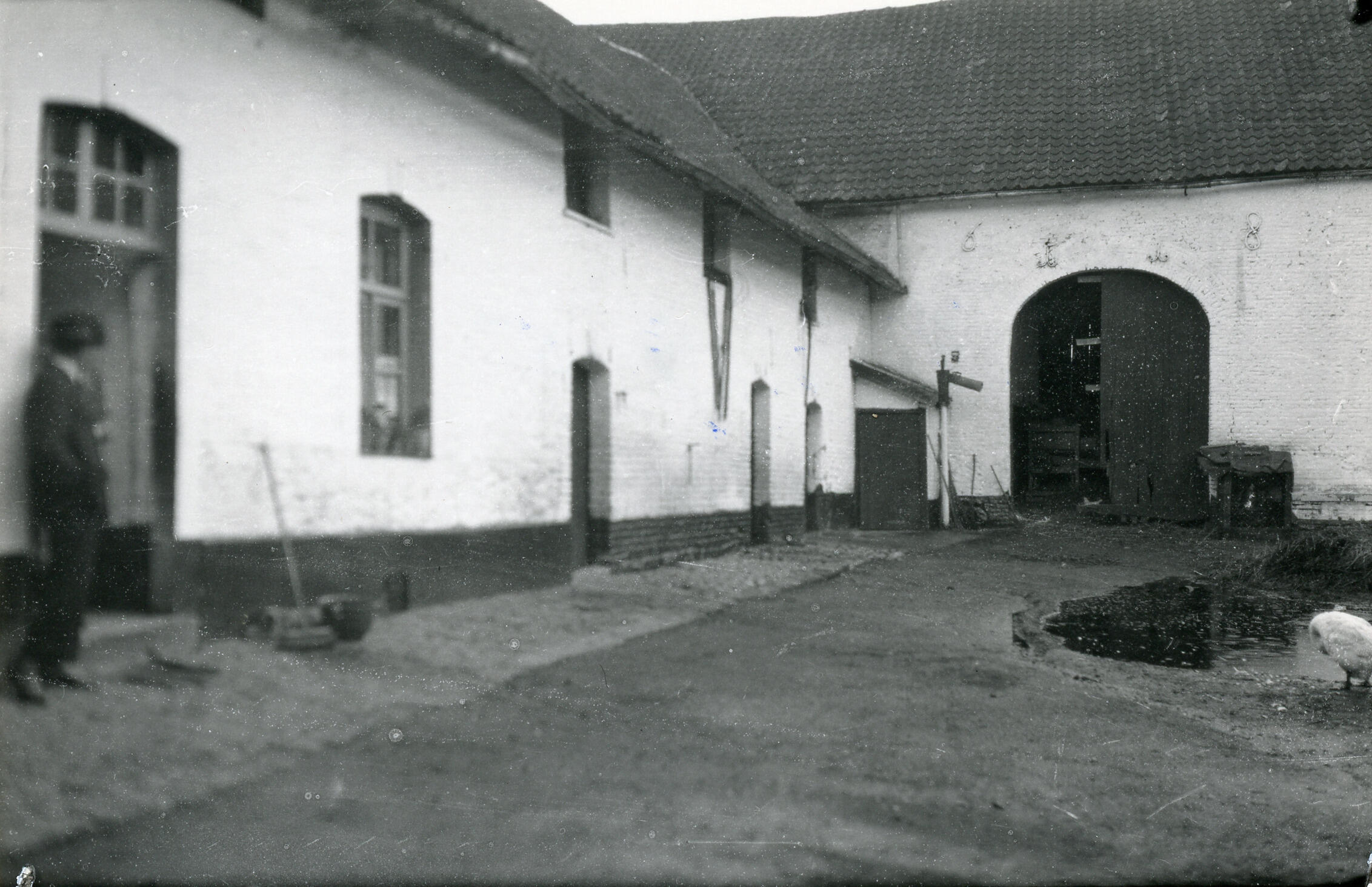 Binnenplaats van een boerderij, Bingelrade, 1936 (zwart-wit foto)