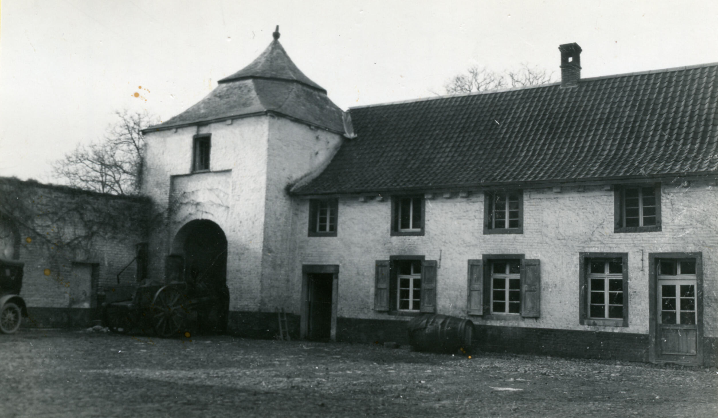 Binnenplaats van een boerderij, Millen (Selfkant), 1930-1940 (zwart-wit foto)