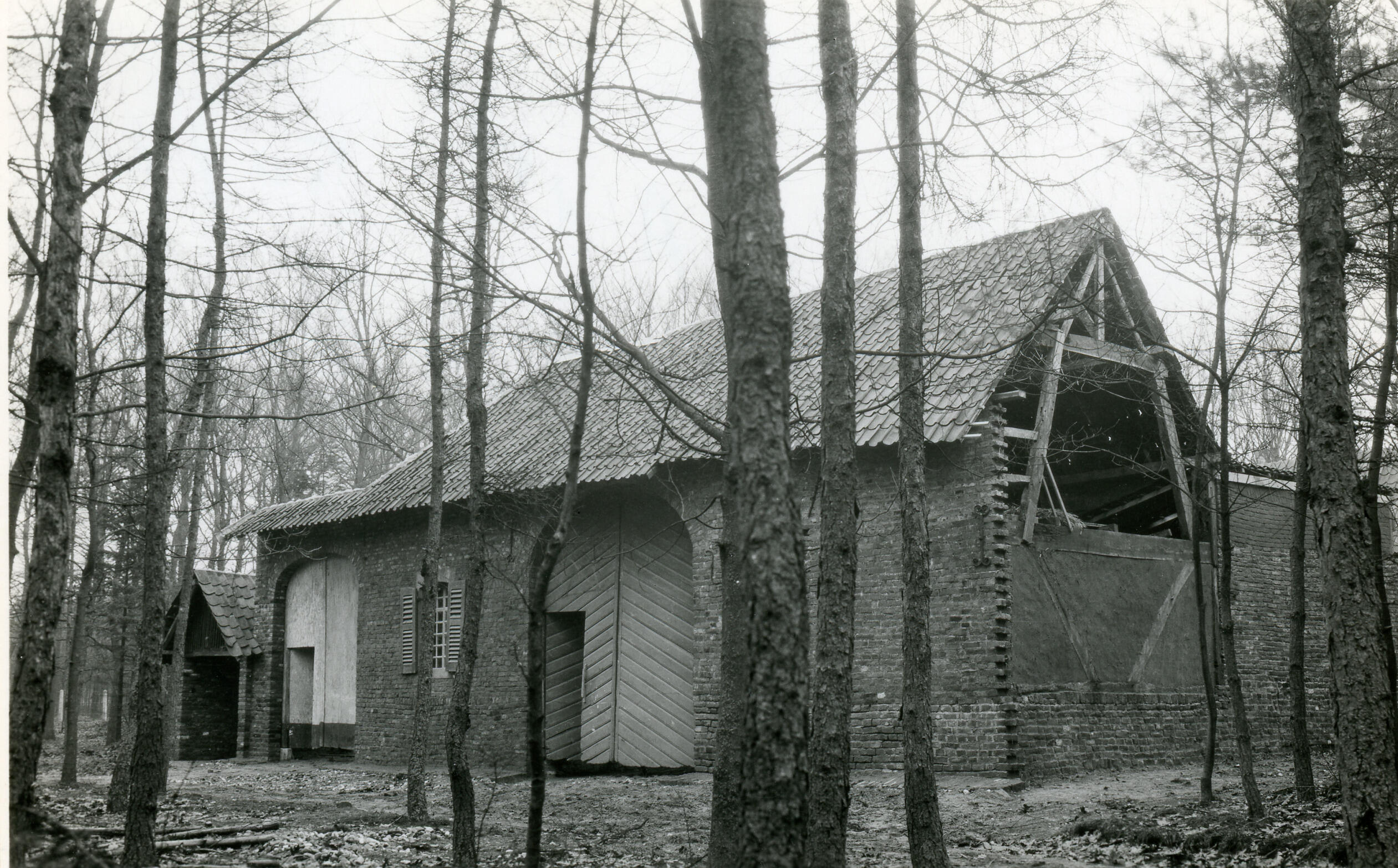 Boerderij uit Krawinkel in het Nederlands Openluchtmuseum, 1930-1940 (zwart-wit foto)