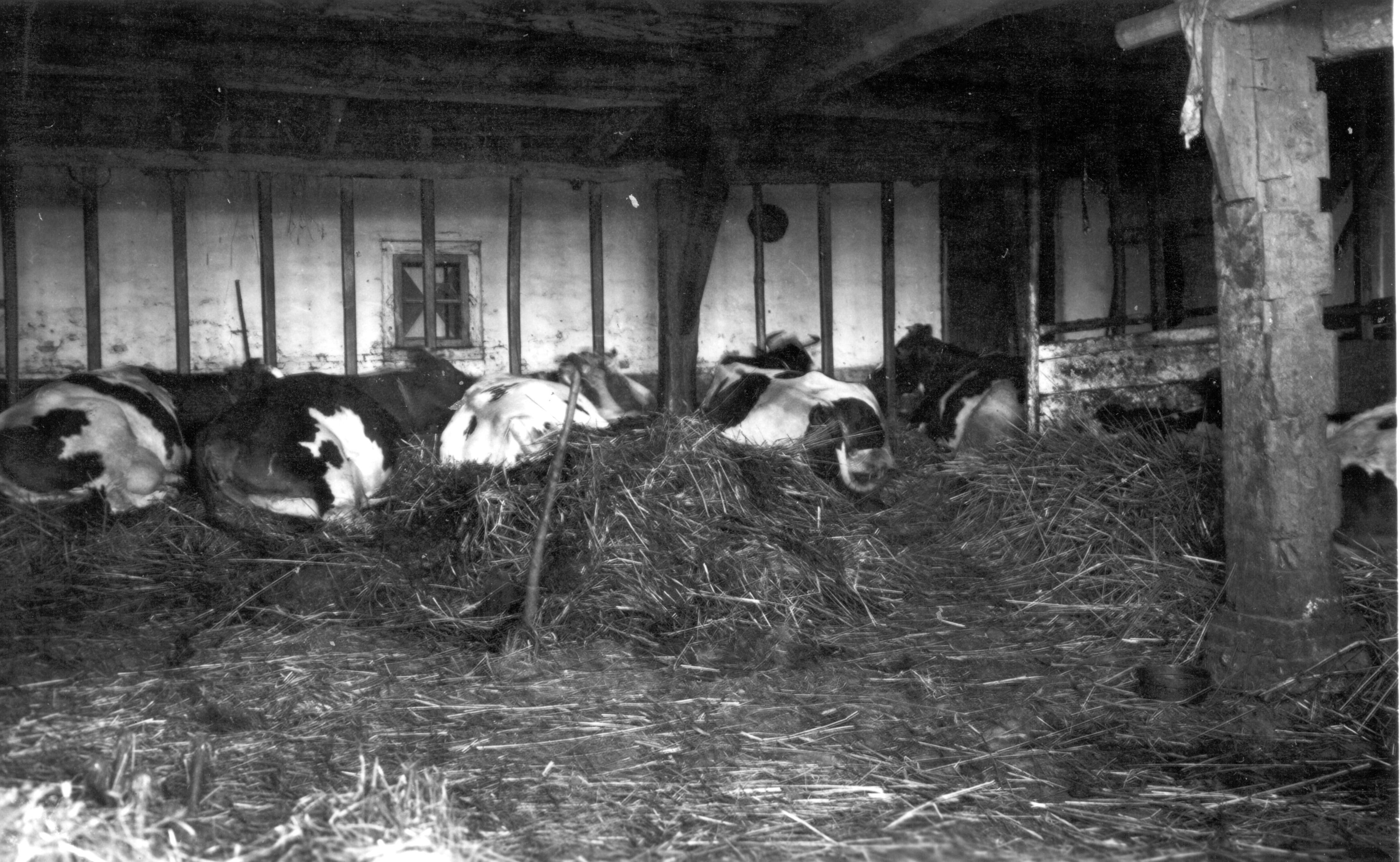 Potstal met koeien, Sint-Michielsgestel, 1938 (zwart-wit foto)