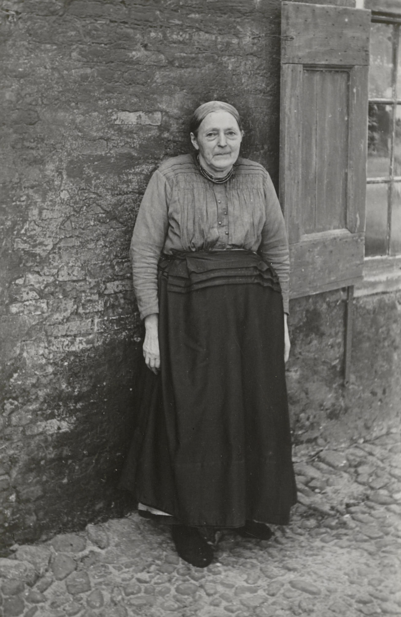 Boerin in werkdracht uit de Leeuwte, een buurtschap in het Ambt Vollenhove. De kleding die de vrouw draagt heeft geen specifieke streekeigen kenmerken, maar is een uitvloeisel van negentiende-eeuwse algemene modedracht. Om haar hals draagt ze een bloedkoralen halssnoer.
