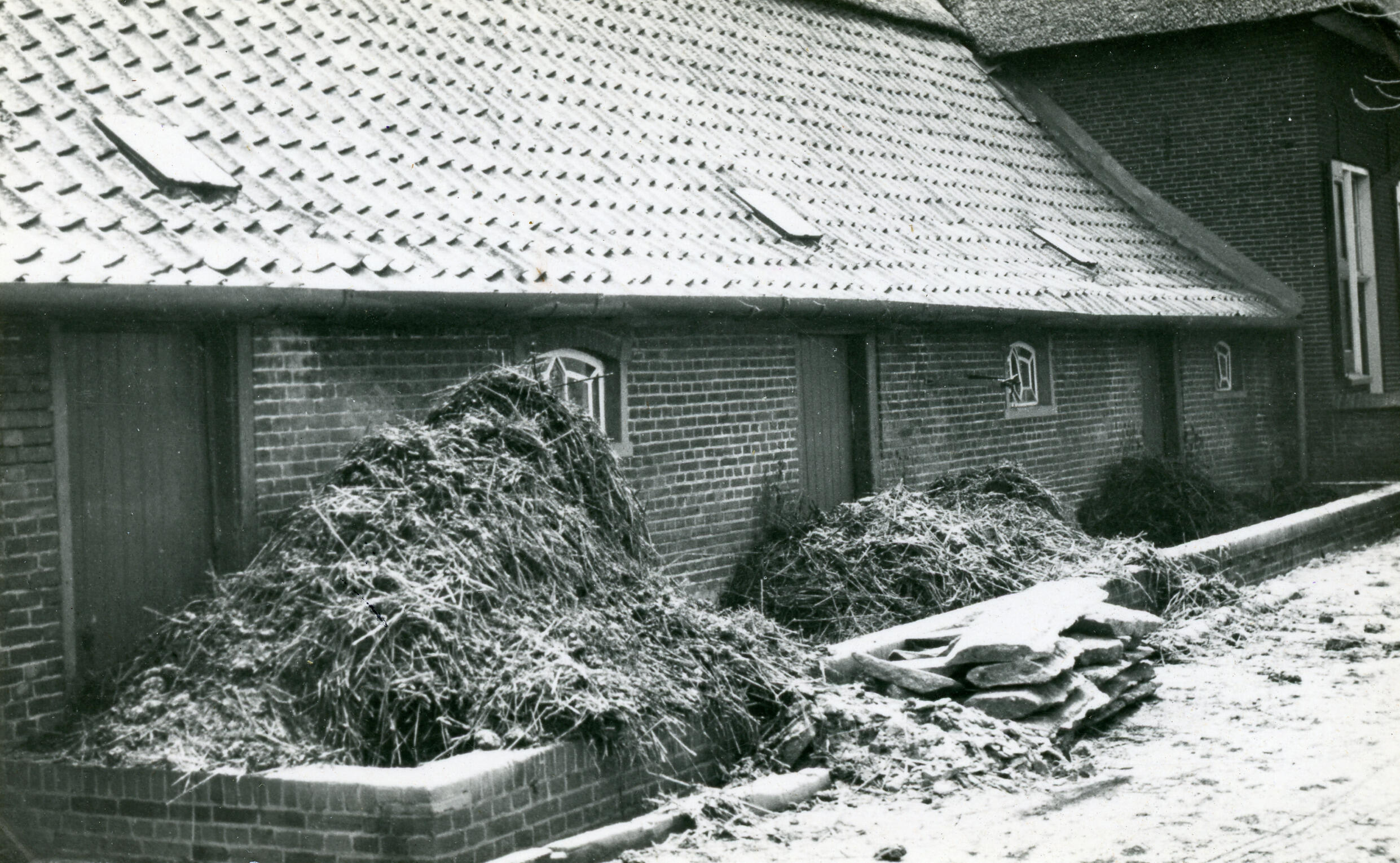 Mesthopen naast de stal van een boerderij in Gendringen.