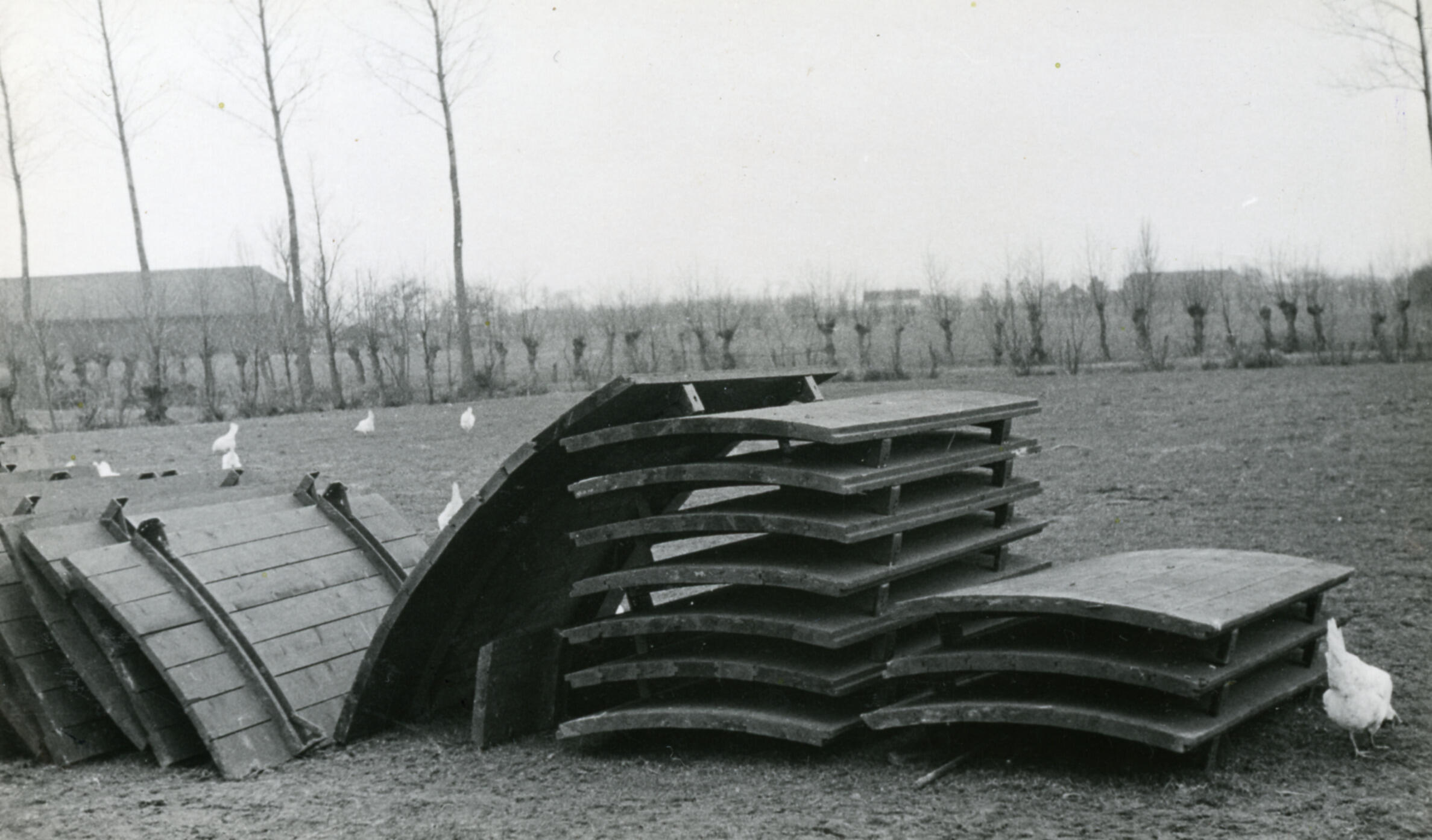 Mallen voor een silo, Hoogland (Amersfoort), 1934 (zwart-wit foto)