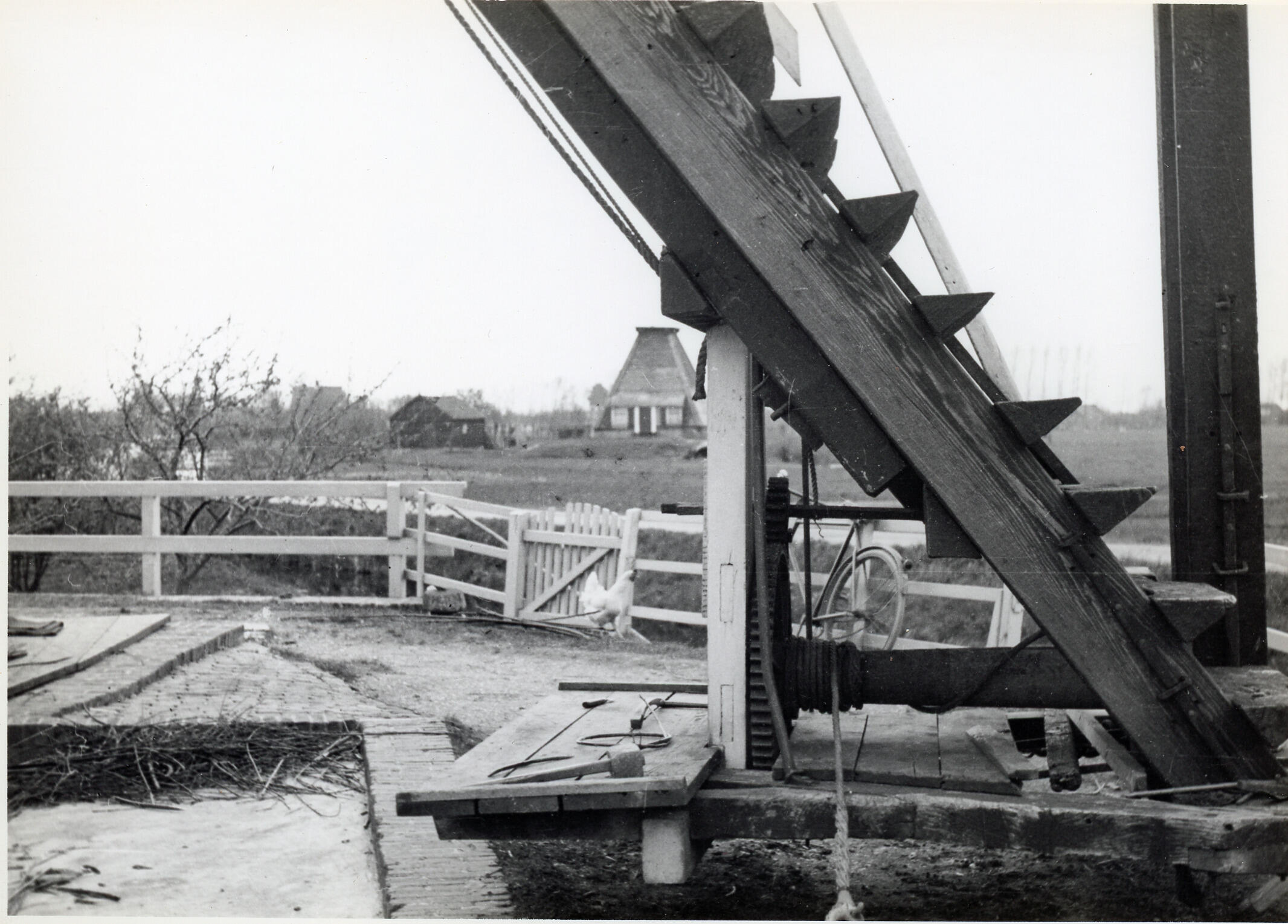 Trap van een wipmolen, Leerdam, 1934 (zwart-wit foto)