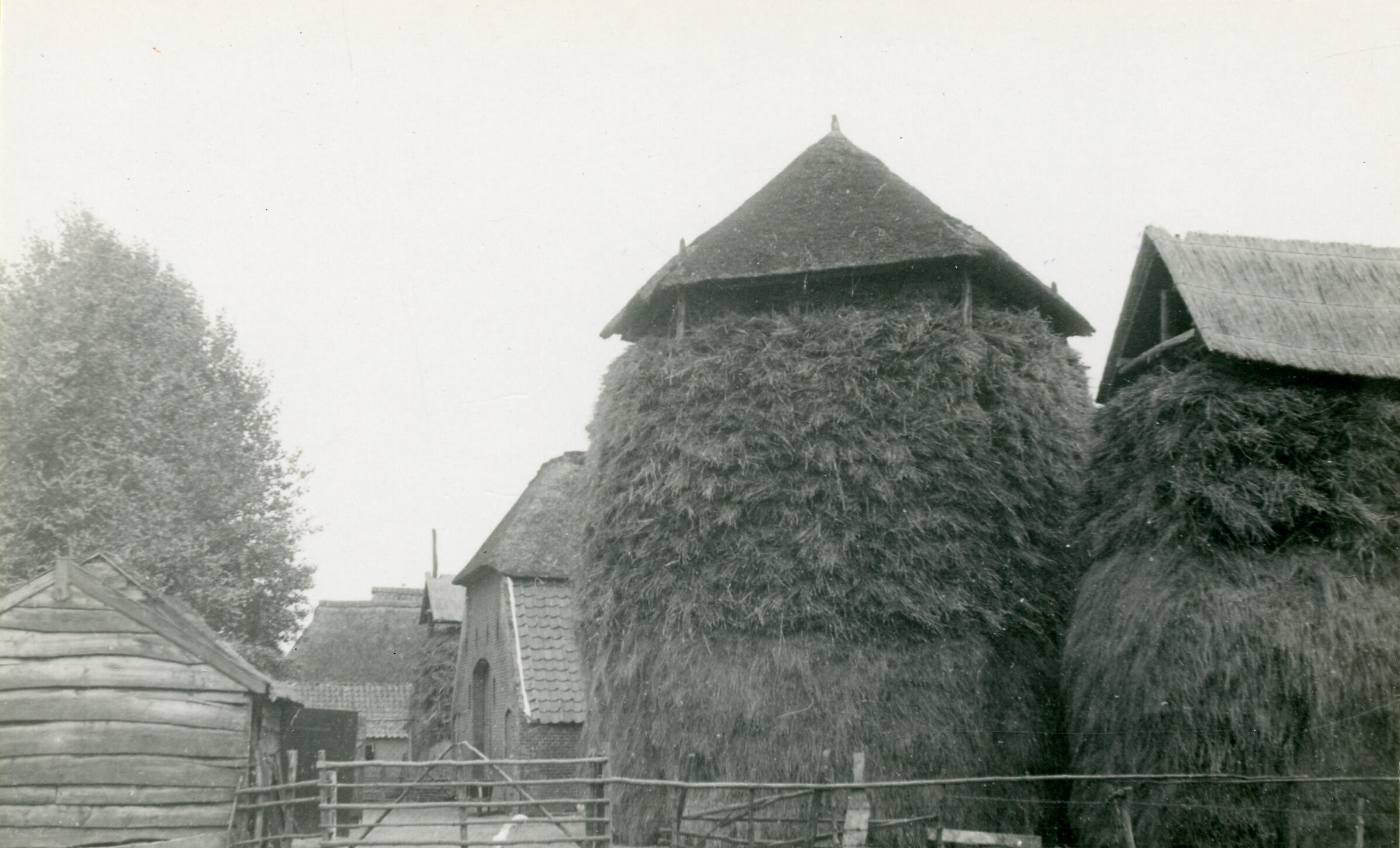 Boerderij met hooibergen, Bennekom, 1934 (zwart-wit foto)