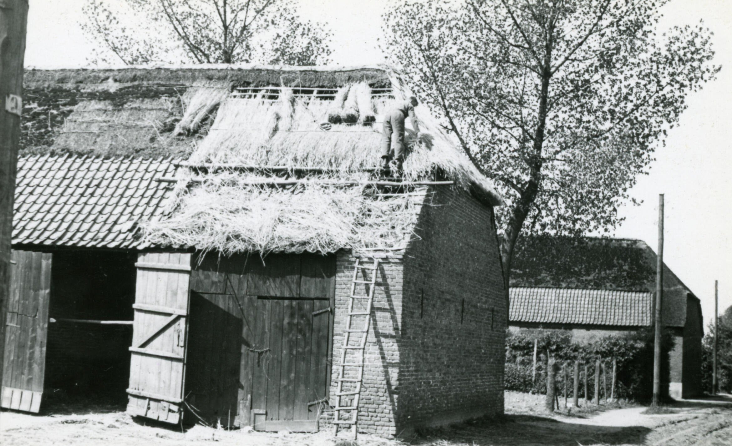 Rietdekken, Leende, 1934 (zwart-wit foto)