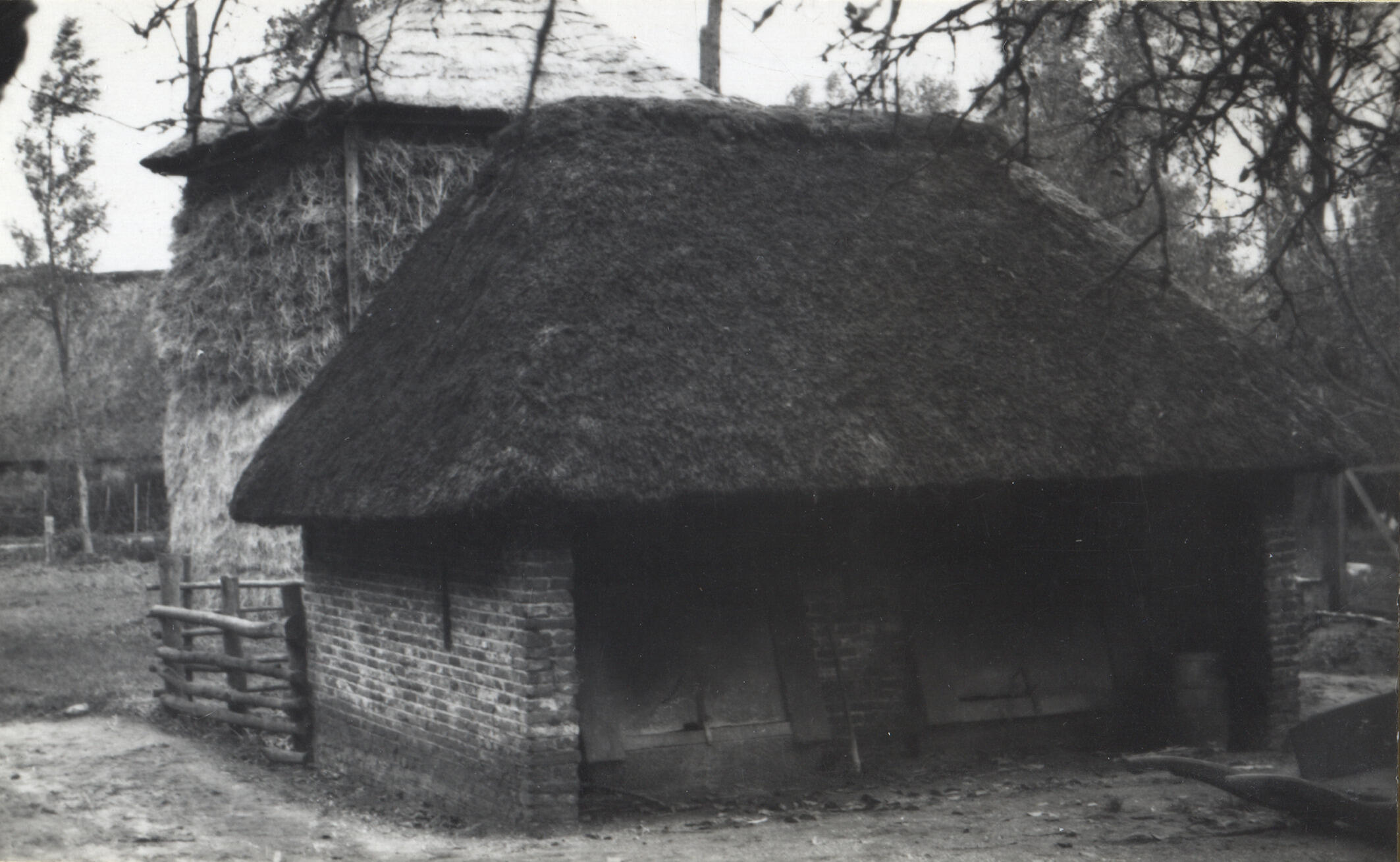 Varkenshok en hooiberg, Hierden, 1934 (zwart-wit foto)