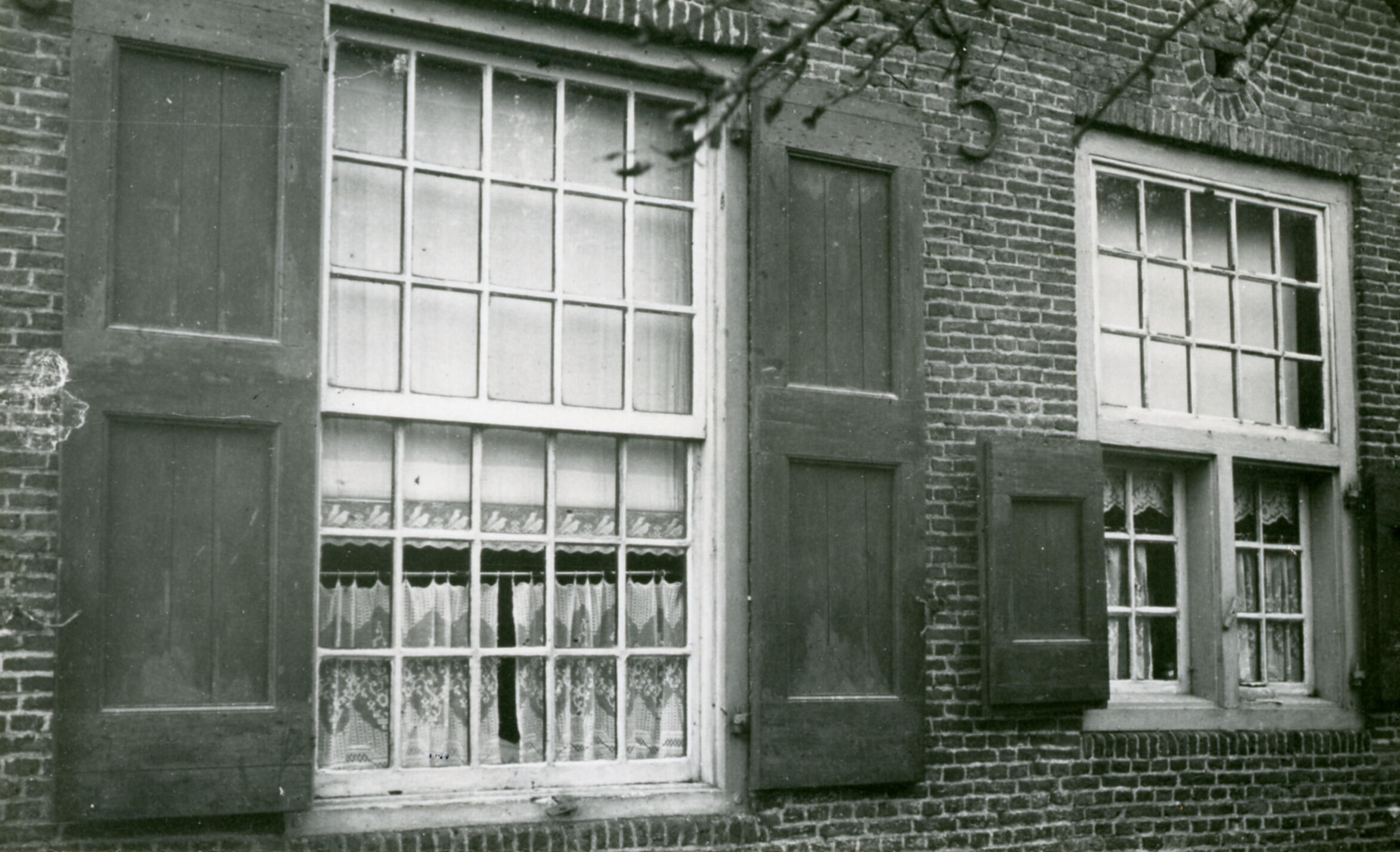 Ramen met luiken, Hierden, 1934 (zwart-wit foto)