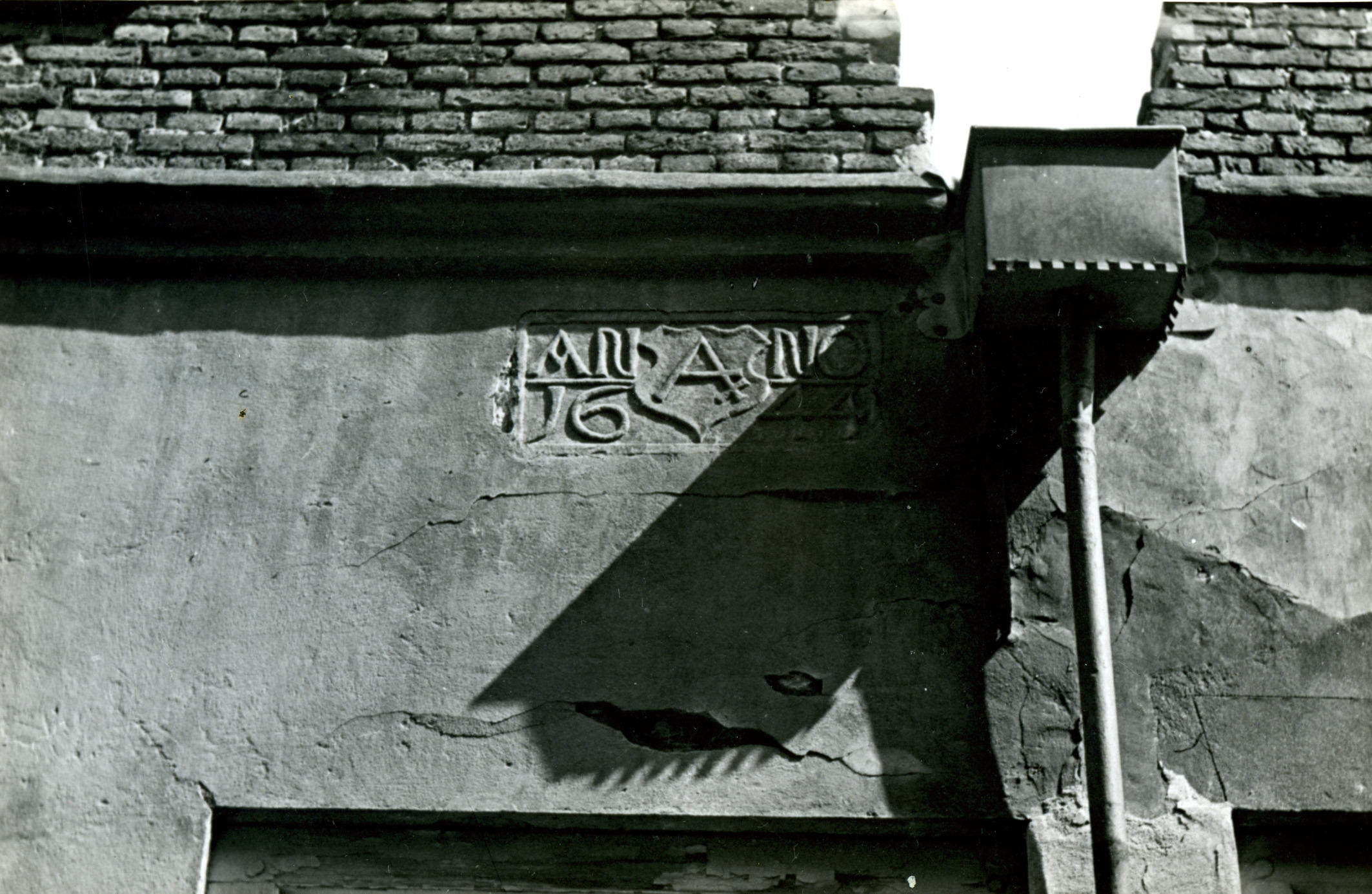 Gevelsteen uit 1644, Hasselt, 1947 (zwart-wit foto)