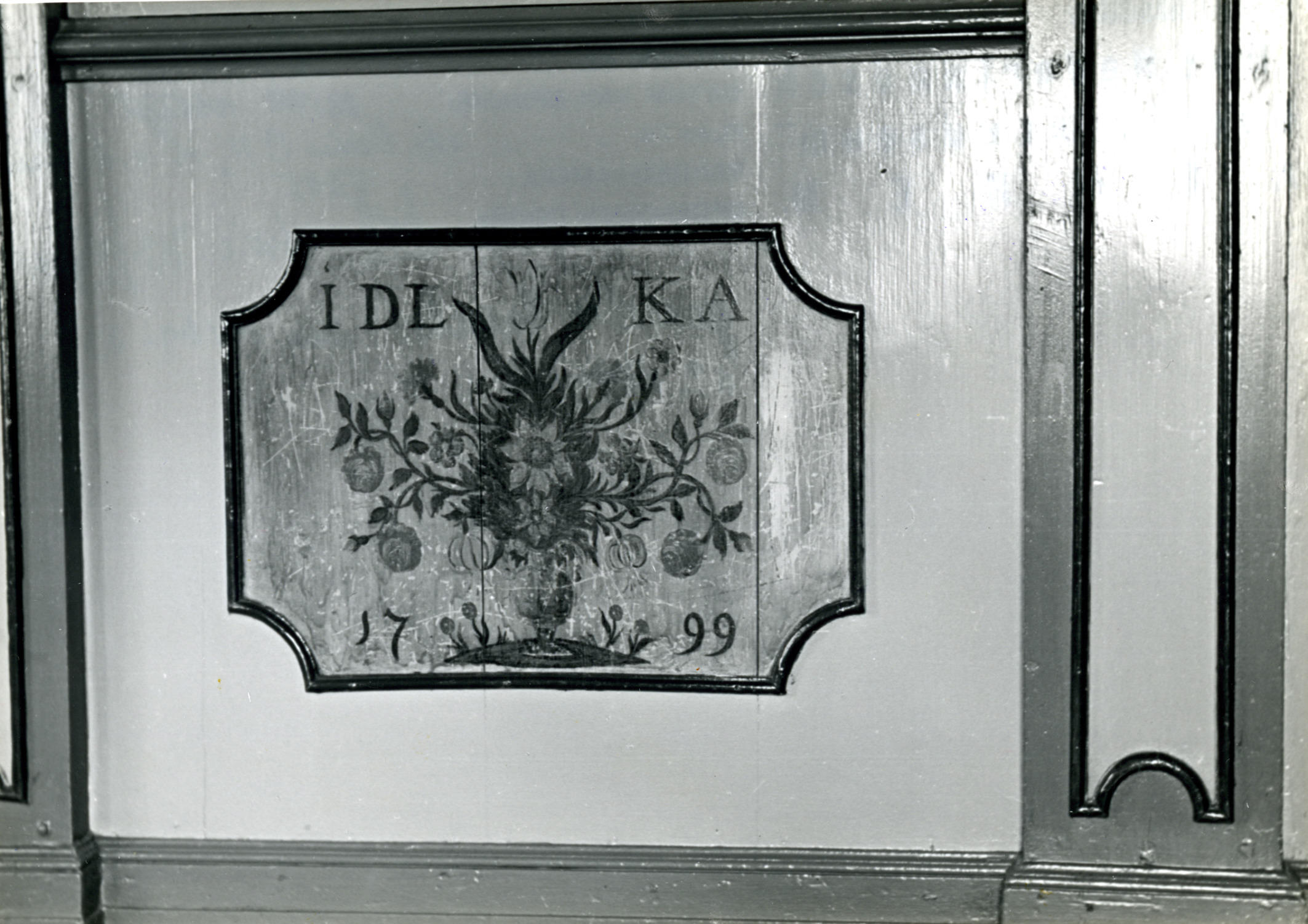 Detail van beschilderd paneel, Den Duin, 1947 (zwart-wit foto)