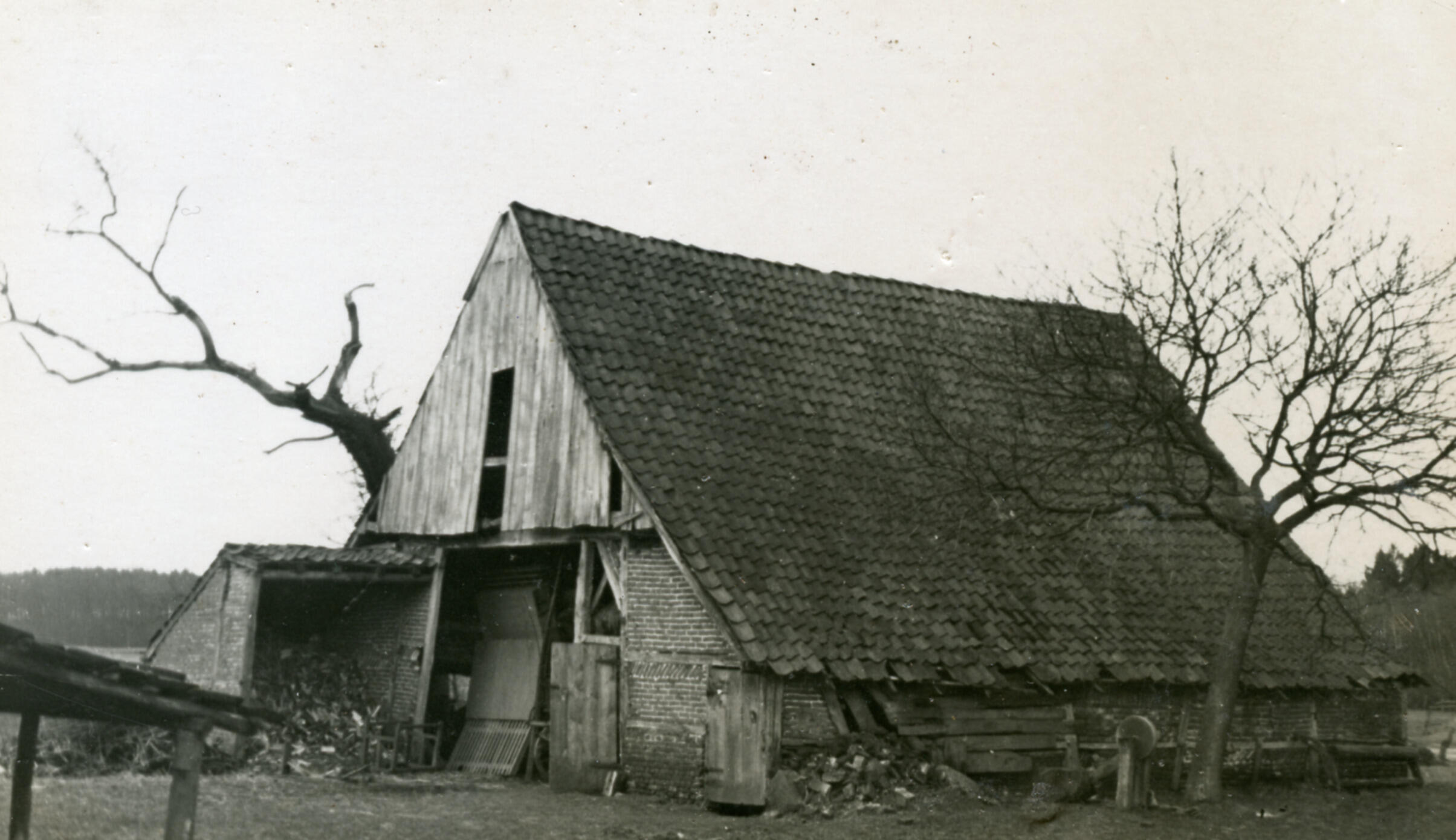 Schuur, het Woold, 1935 (zwart-wit foto)