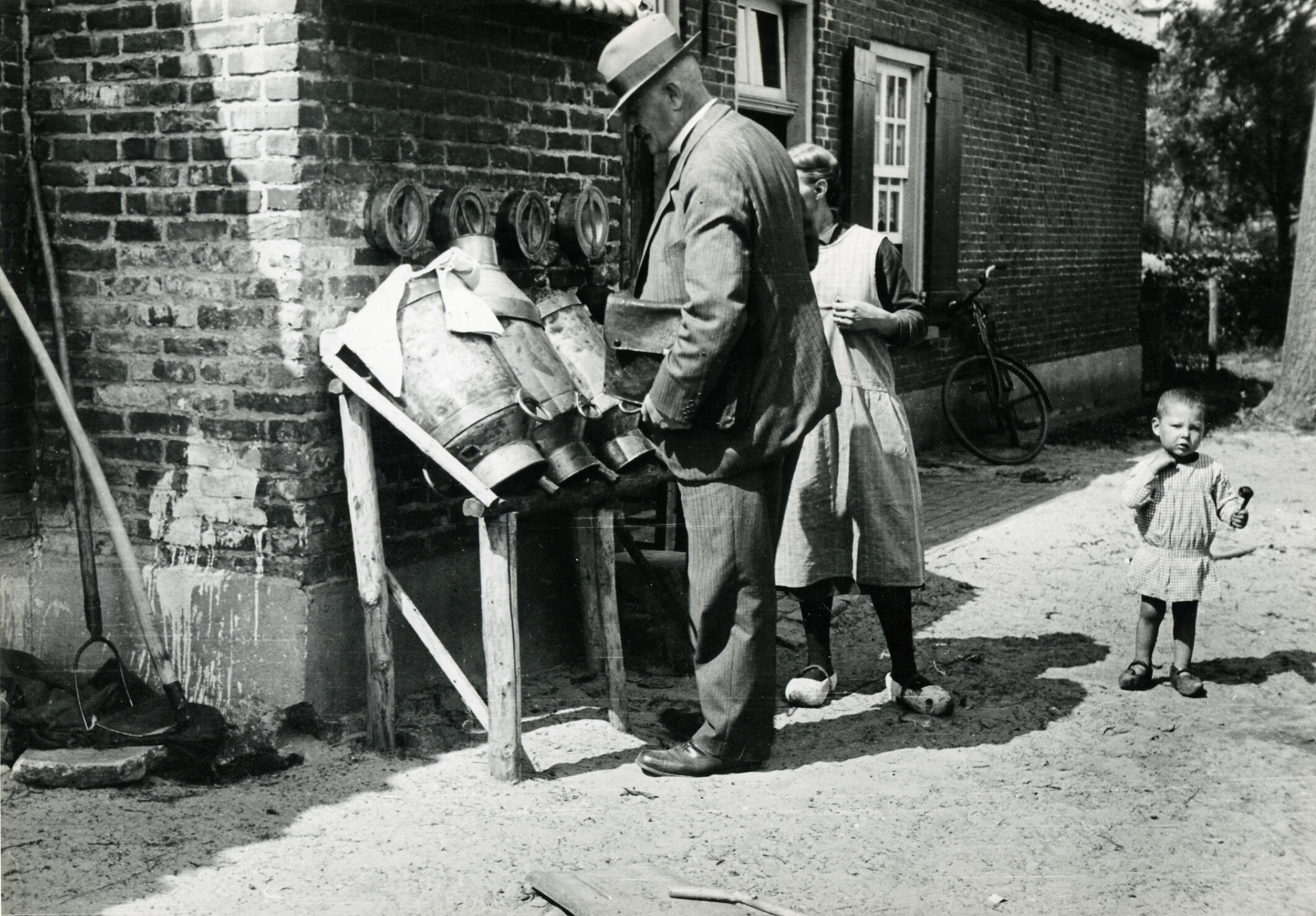 Inspectie van het melkgerei, Veghel, 1935 (zwart-wit foto)