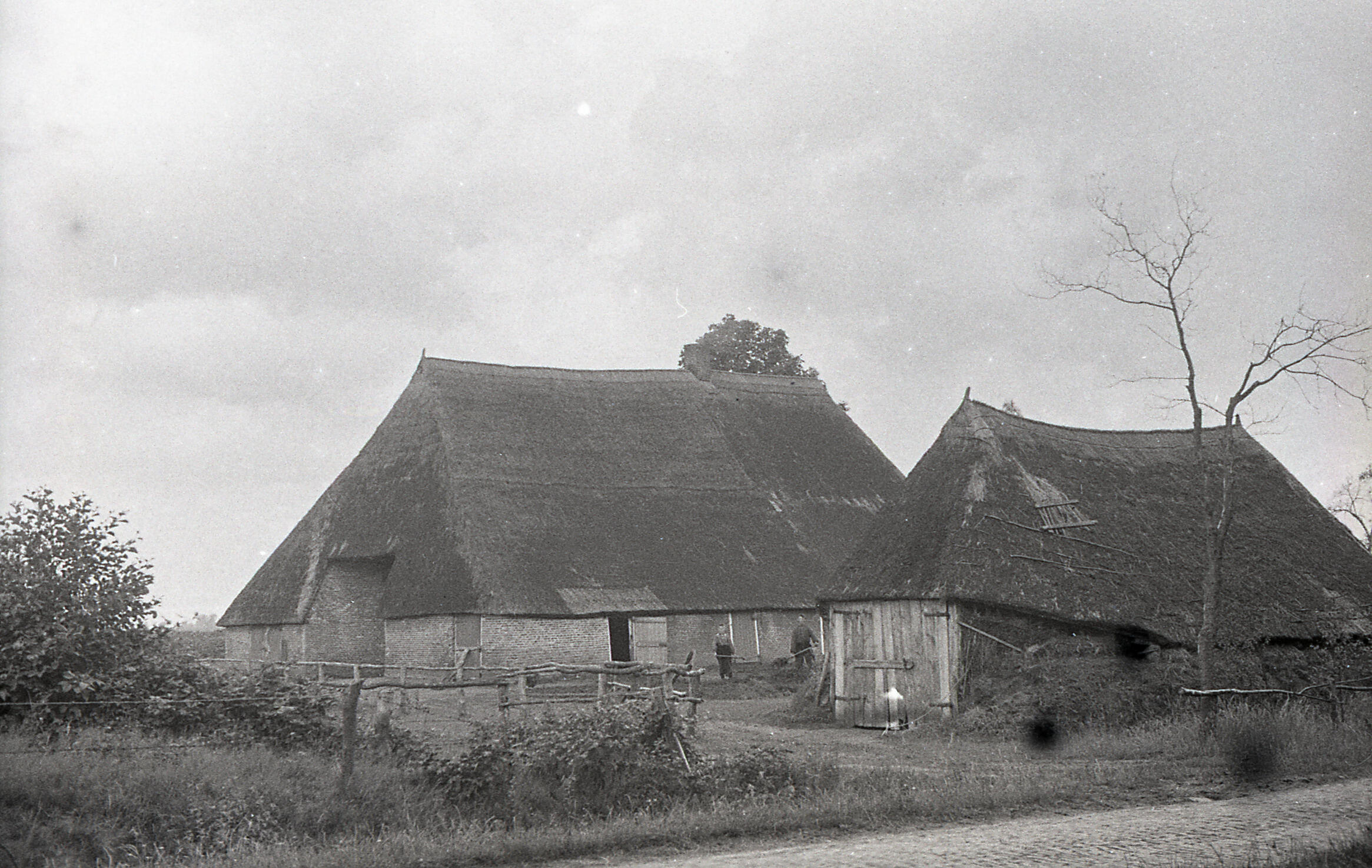 Boerderij met een schaapskooi, Overijssel, 1930-1940 (zwart-wit foto)