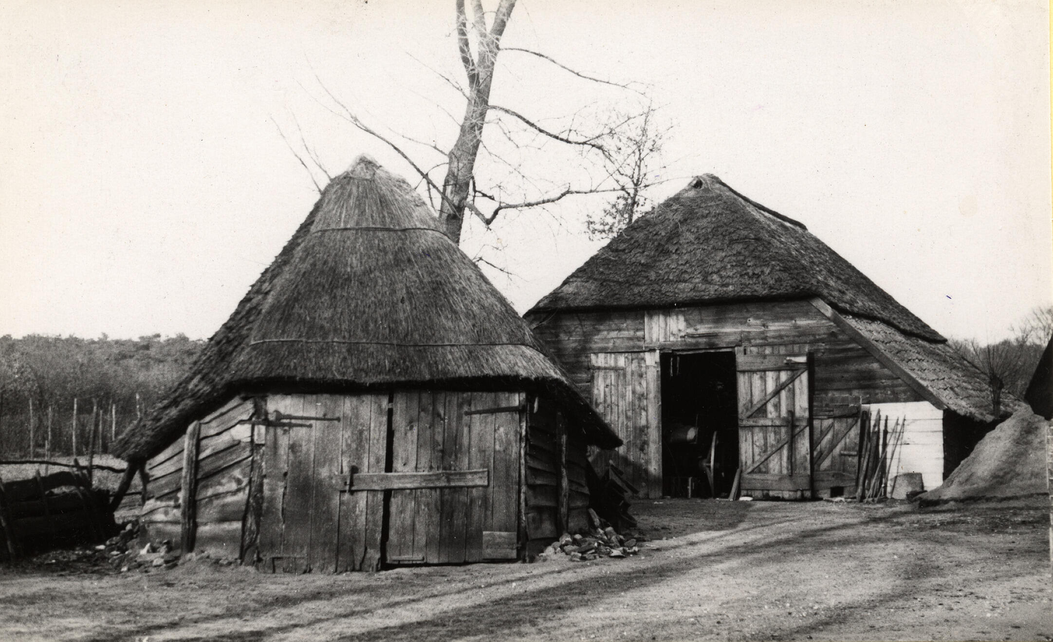 Schaapskooi met schuur, Hoekelum, 1936 (zwart-wit foto)